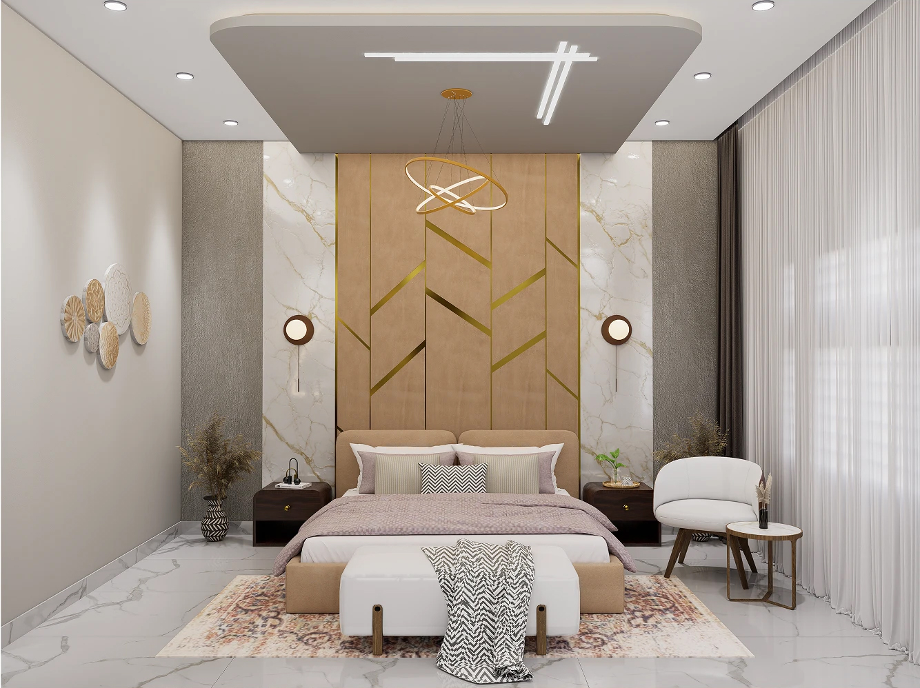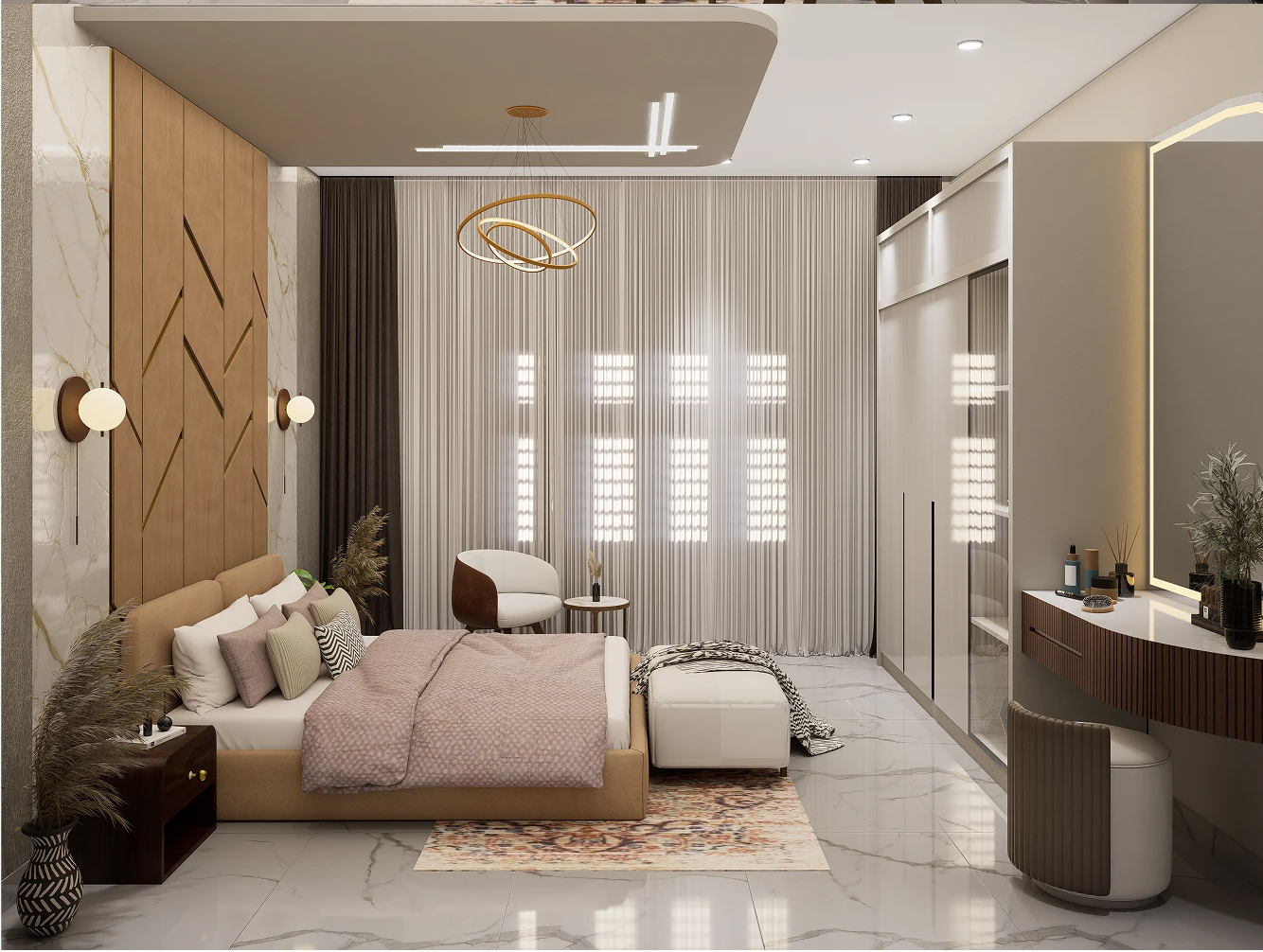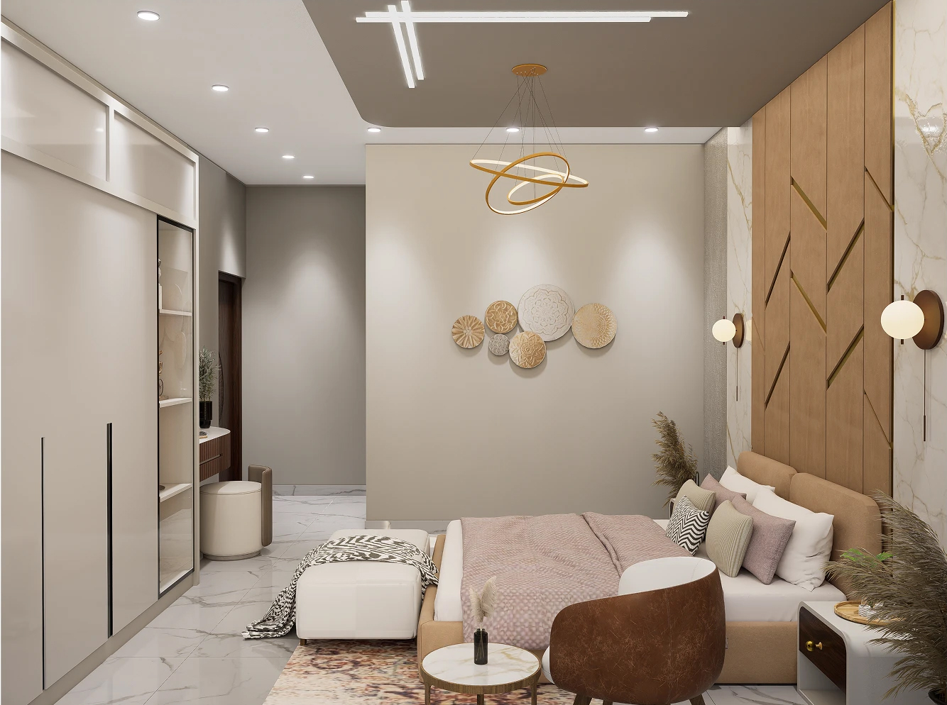 ✨还在羡慕别人家的高级感卧室?这套现代轻奢风设计直接封神!木质纹理与大理石的优雅碰撞,金色线条勾勒出奢华轮廓,每一寸都散发着精致格调~