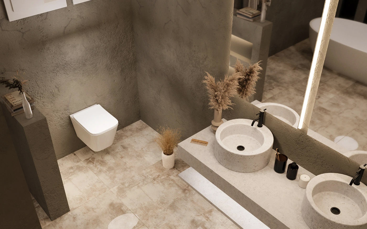 这种 “侘寂风松弛感” 浴室,把「原始质感」和「疗愈氛围」融合得恰到好处!想知道怎么选水泥漆?怎么规划自然元素?怎么让粗糙墙面显高级?