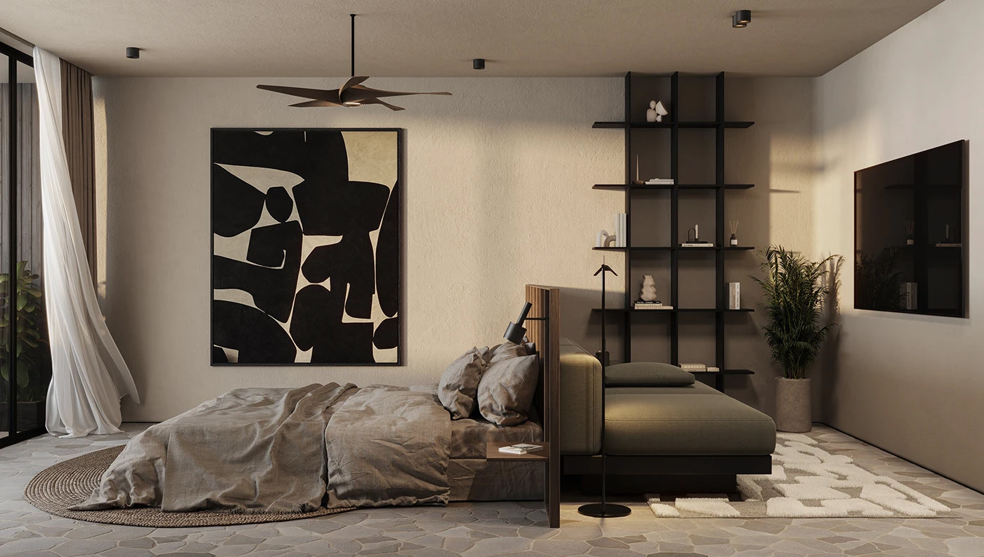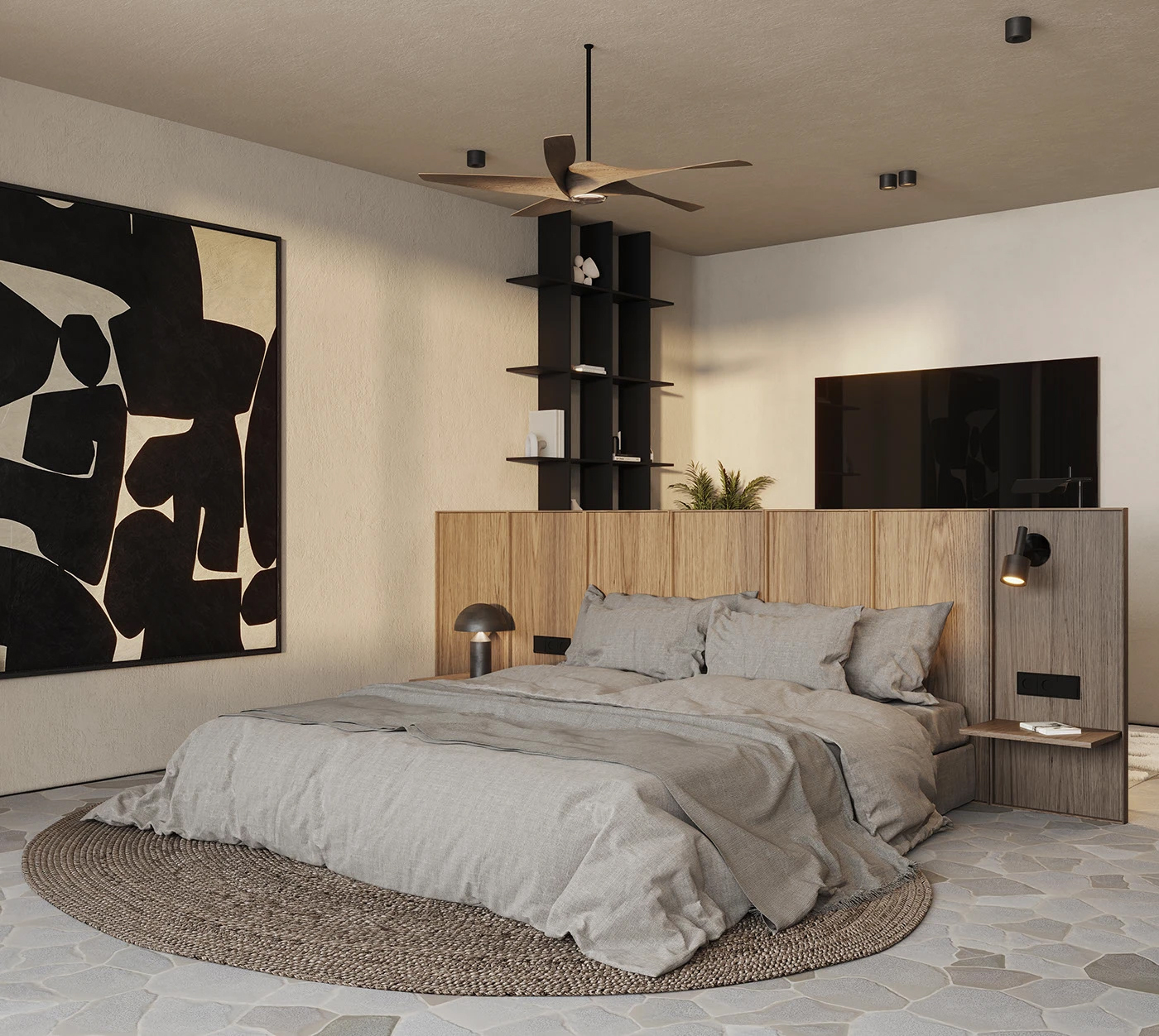 • 功能至上: 悬浮床头柜、嵌入式收纳、开放式书房… 把 “实用” 和 “颜值” 焊死,小户型也能装出 “空旷感”,杂物统统消失术!