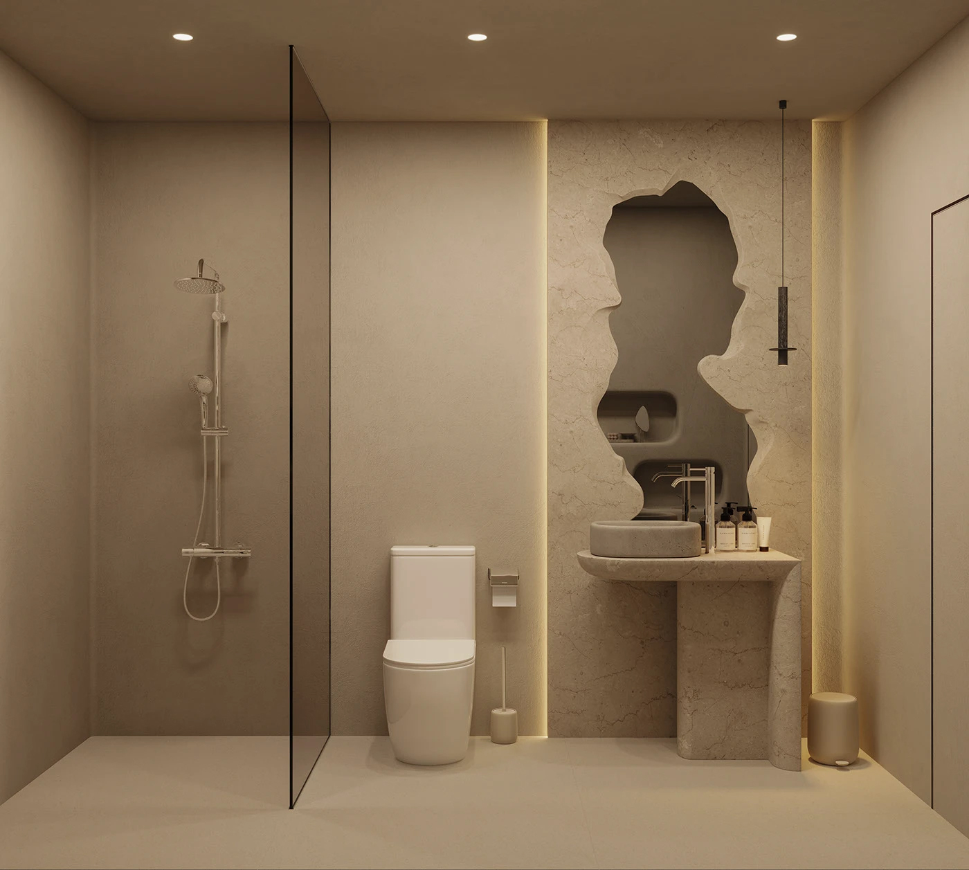 • 侘寂美学: 微水泥墙面的质朴肌理 + 原木的自然纹理,把 “不完美的高级感” 拉满🏜️ 没有浮夸装饰,却藏着岁月沉淀的松弛感,仿佛在说 “生活本该这样”~
