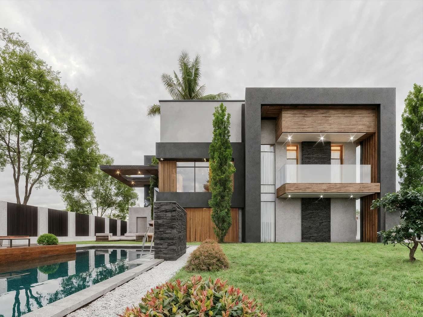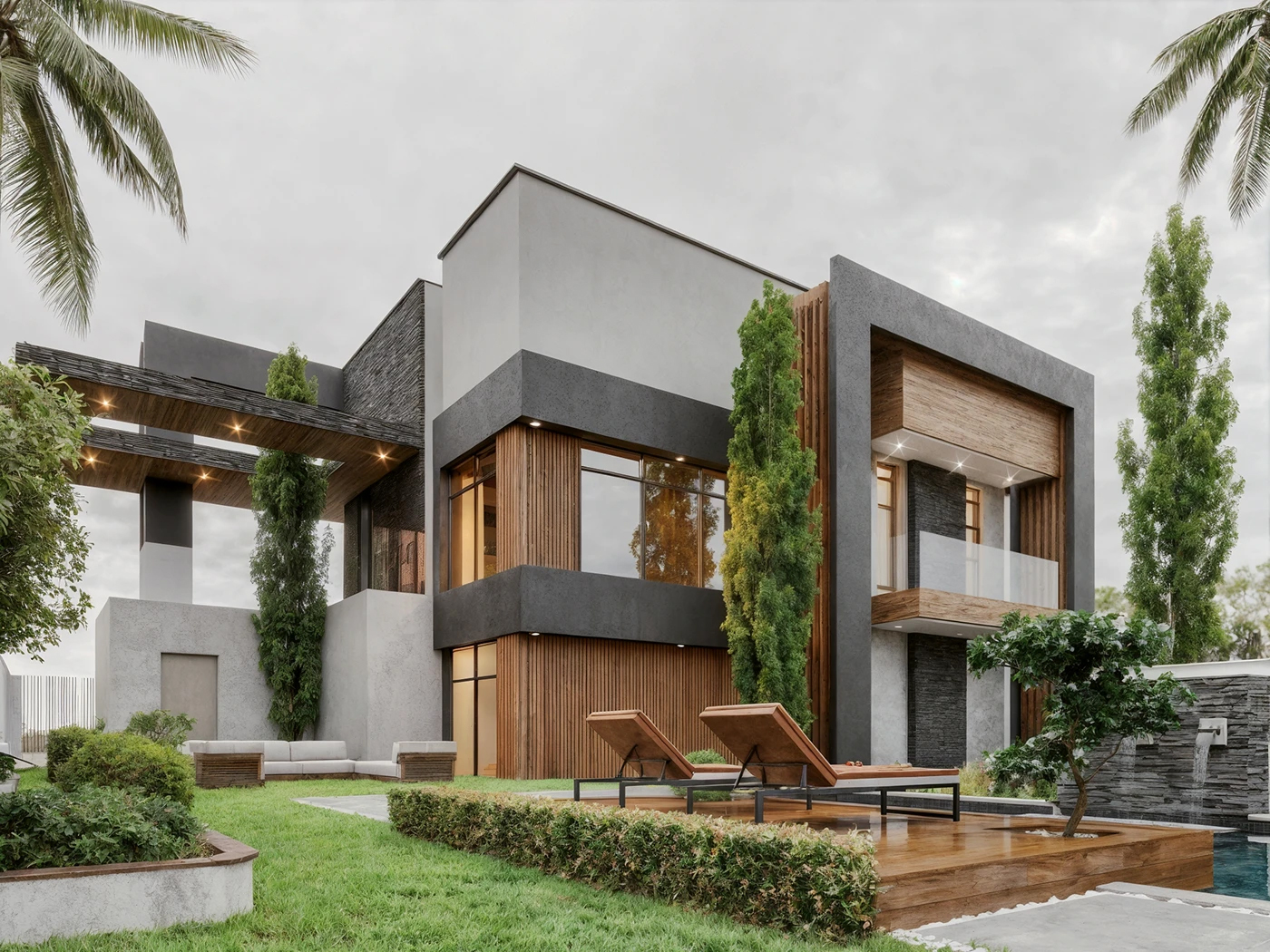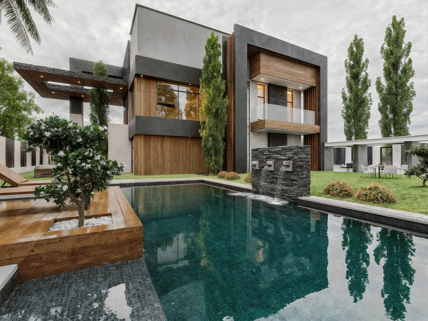 简洁几何形体构建建筑轮廓,利落线条像把 “繁杂” 一键清空,混凝土、石材的冷硬质感,碰撞温润木质元素,理性与自然的融合,高级又治愈🌿