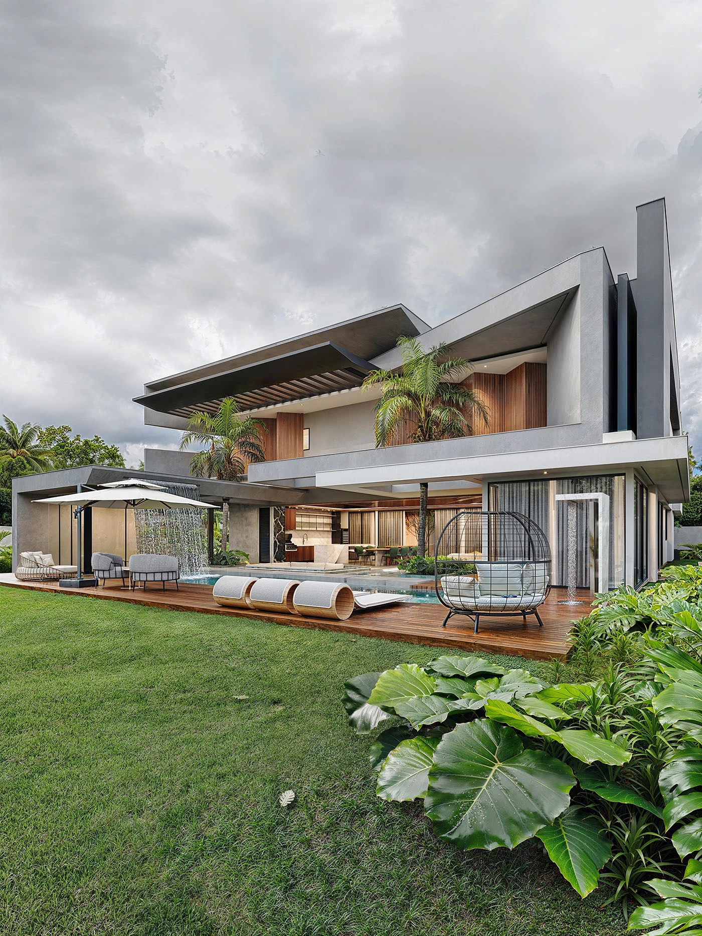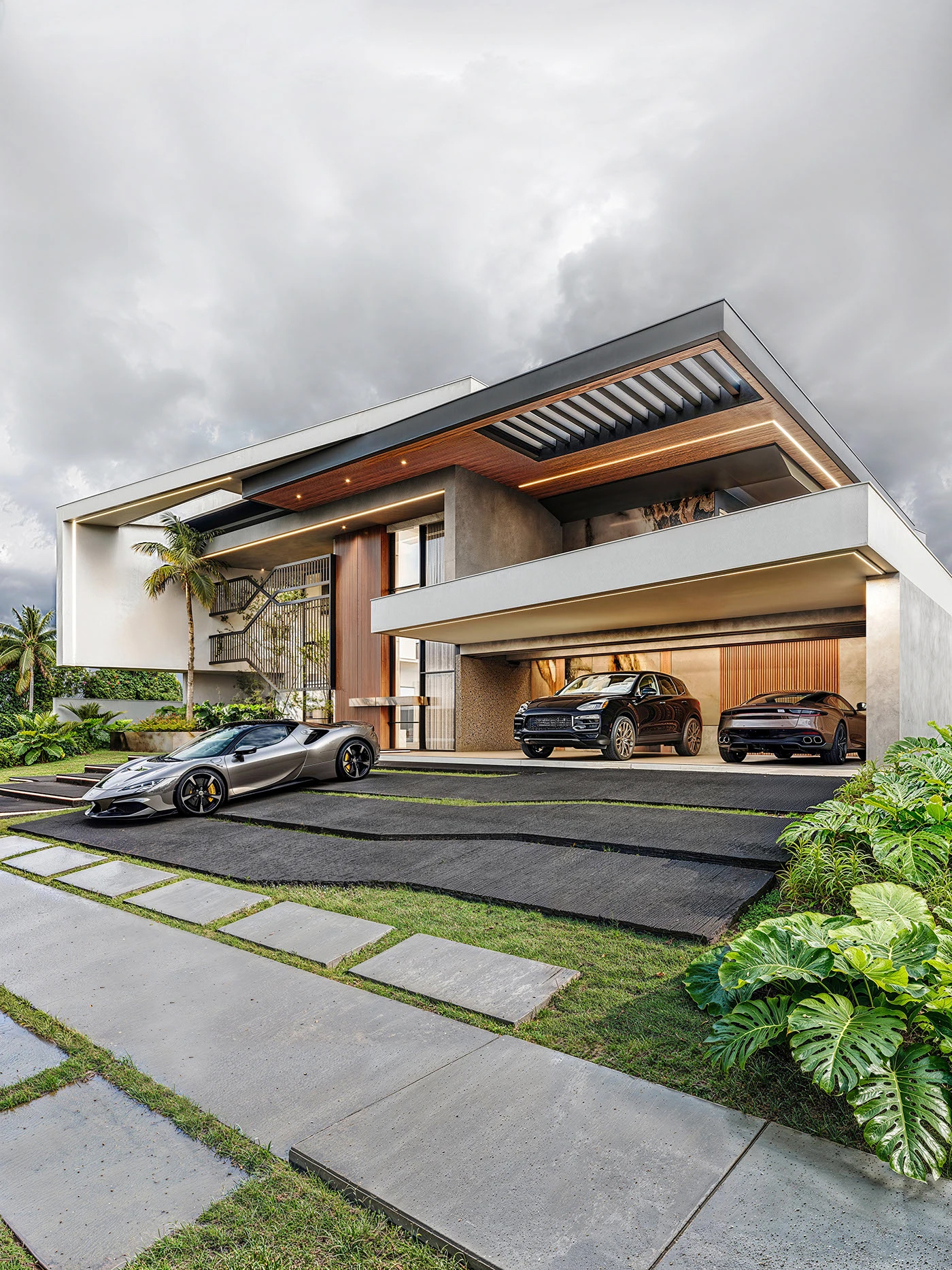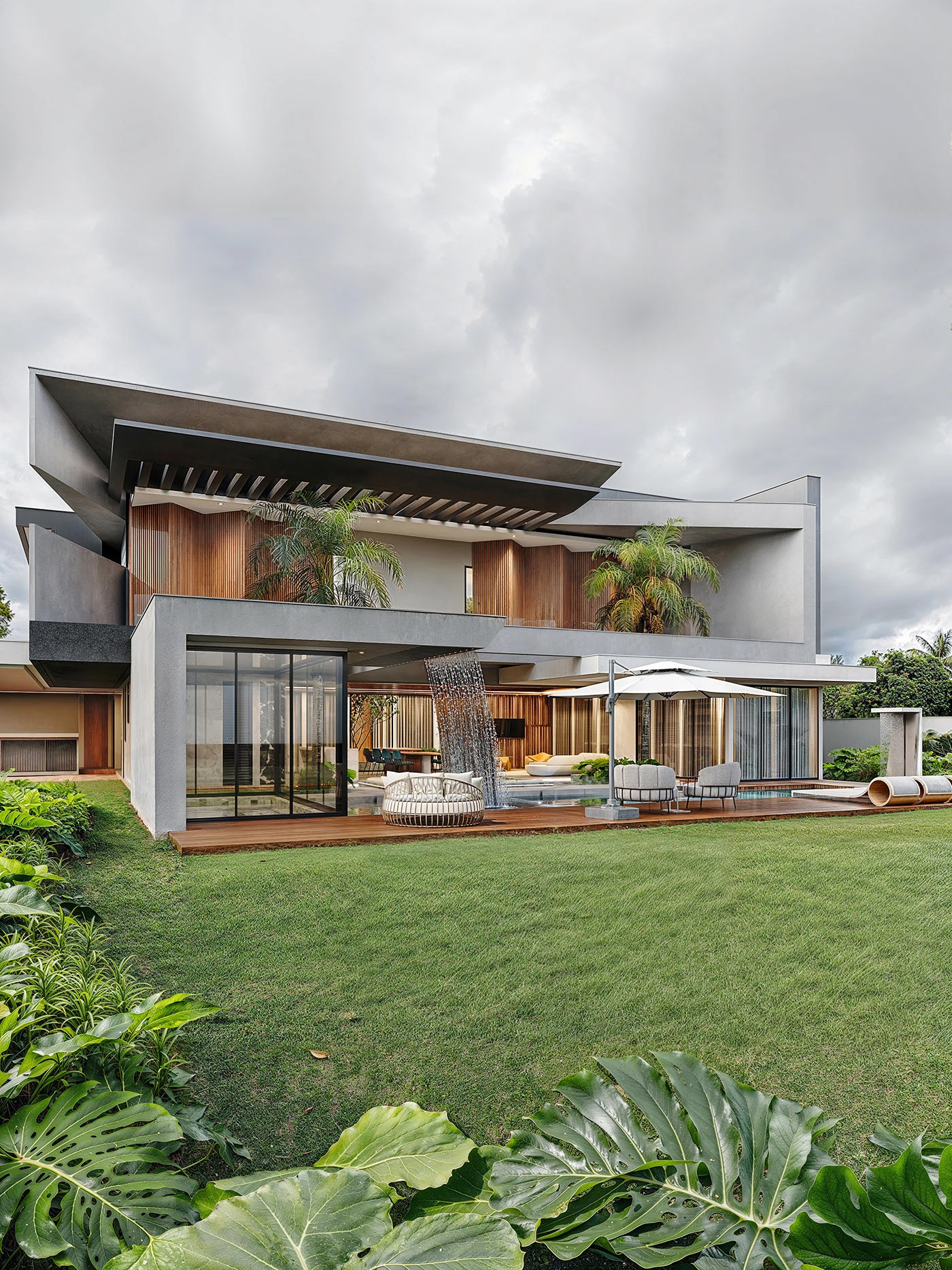 - 材质混搭:清水混凝土(冷)+ 实木格栅(暖)+ 通透玻璃(柔),冲突里找平衡;