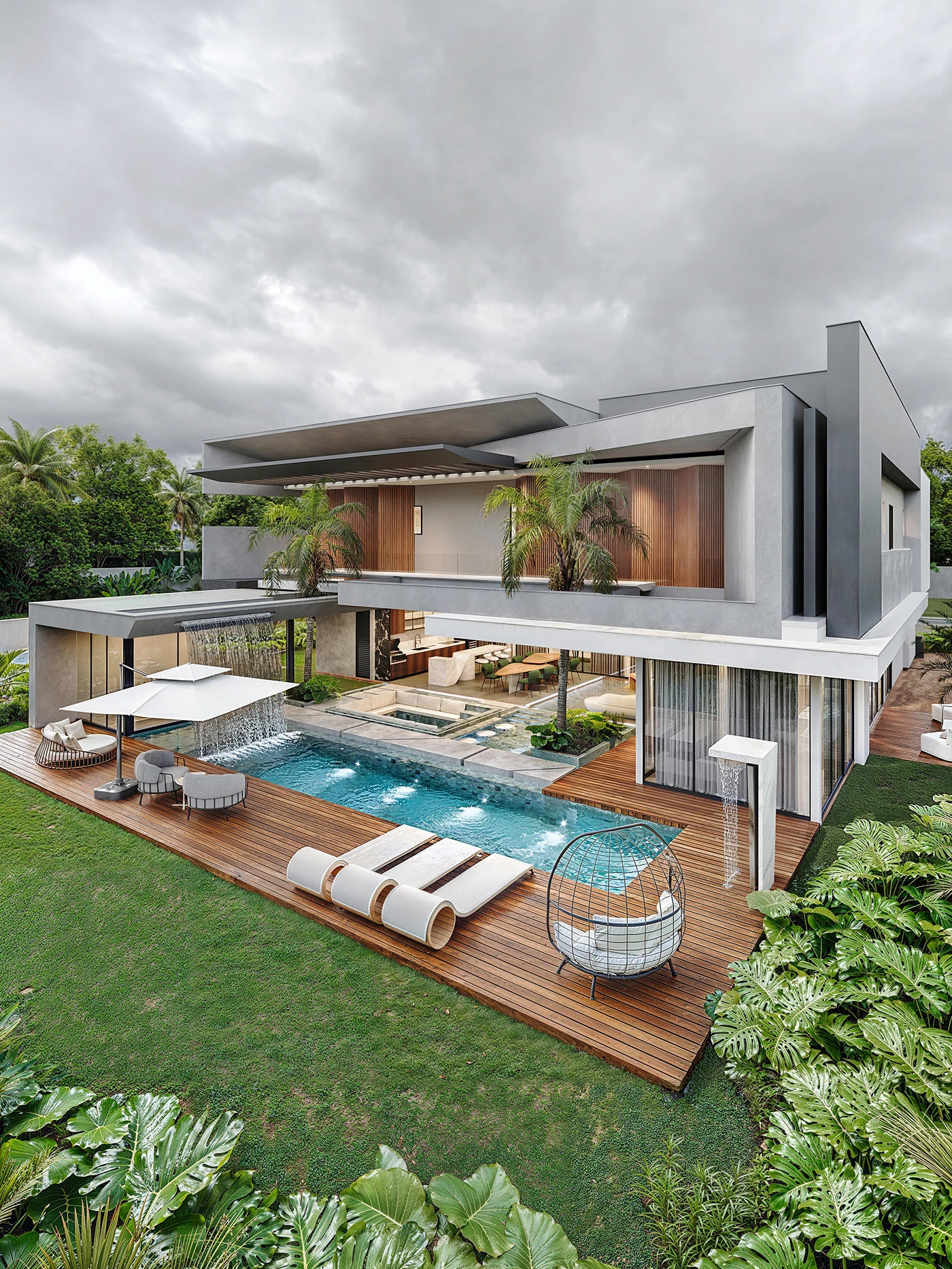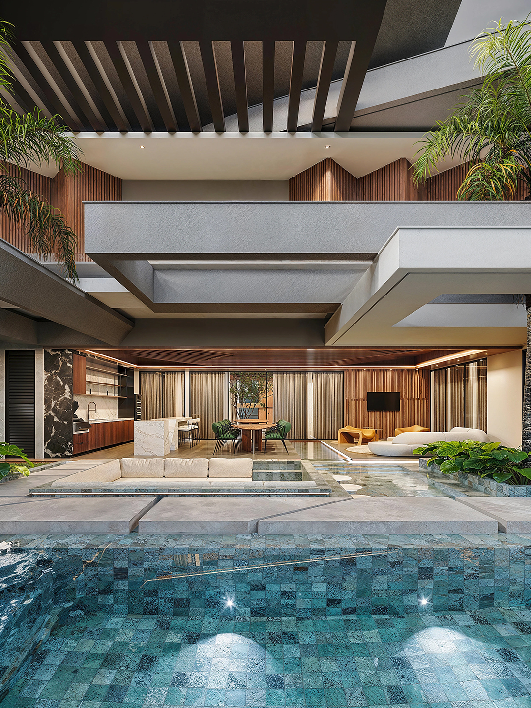 - 功能美学:车库、泳池、下沉客厅… 每个空间都 “好看又好住”,连植物摆放都藏着「层次学」;