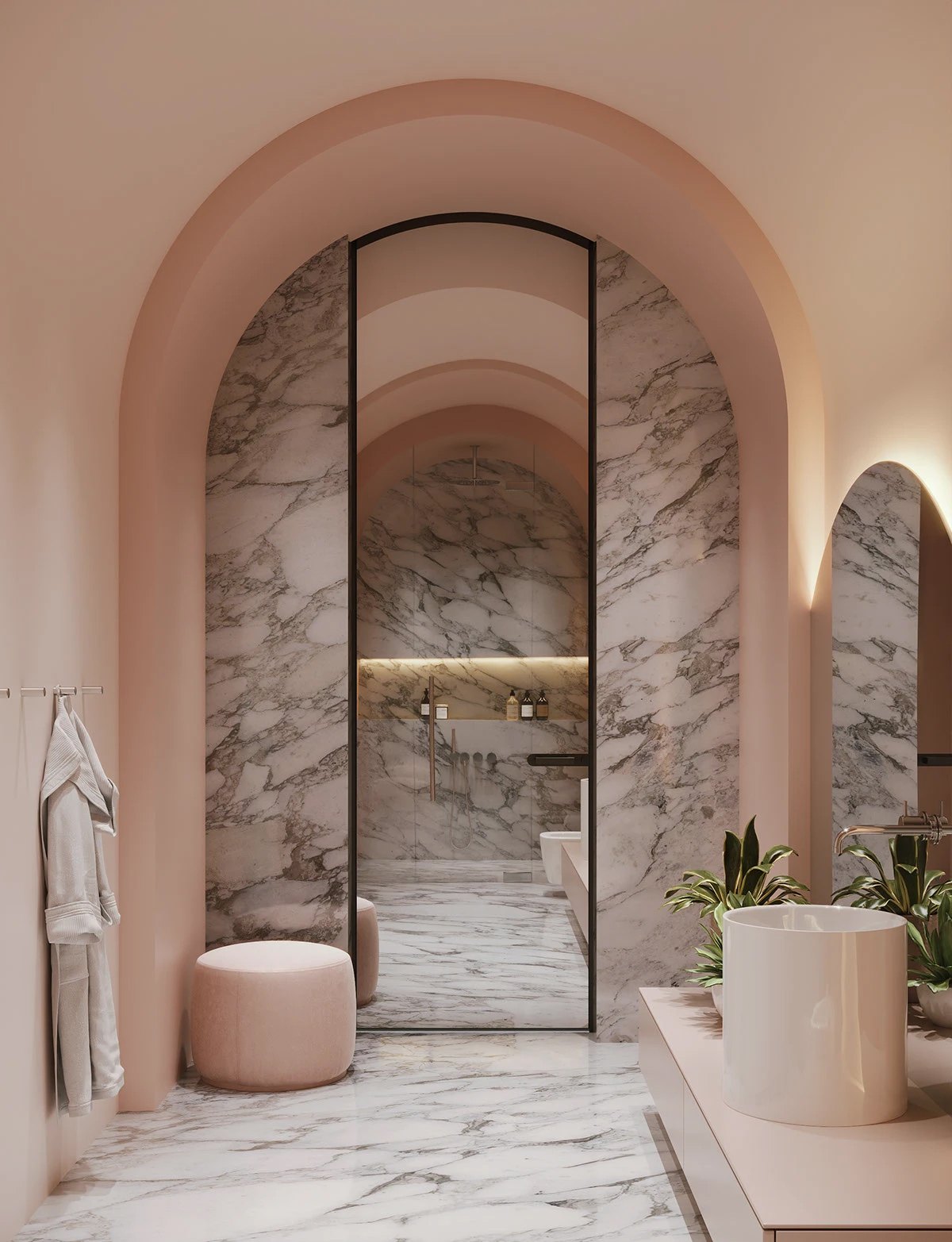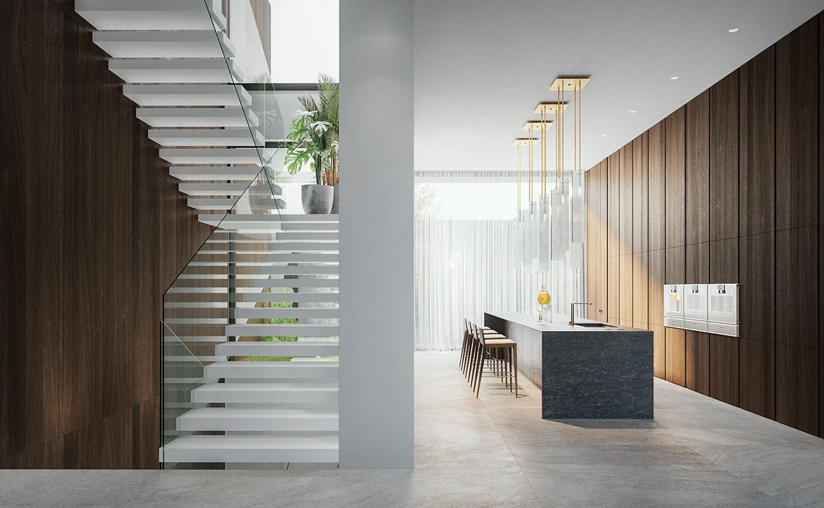 - 细节控狂喜:开放式厨房的悬浮岛台、浴室的拱形门洞、楼梯的玻璃护栏… 每个元素都藏着 “精致感公式”。