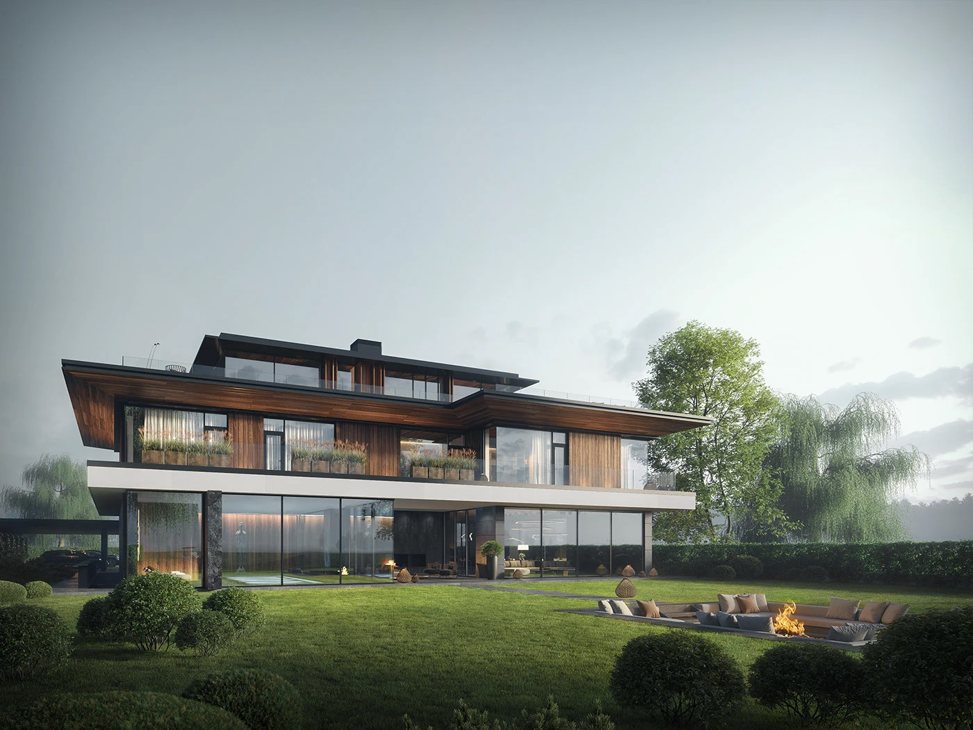 深色石材的沉稳 + 暖木饰面的温润 + 通透玻璃的轻盈,仿佛把 “东方诗意” 揉进现代建筑骨血里;大屋檐线条藏着新中式魂,玻璃幕墙又透着未来感… 原来 “让别墅既有烟火气又高级”,靠的是可复制的设计公式 —— 而这正是设计培训能教你的核心能力!