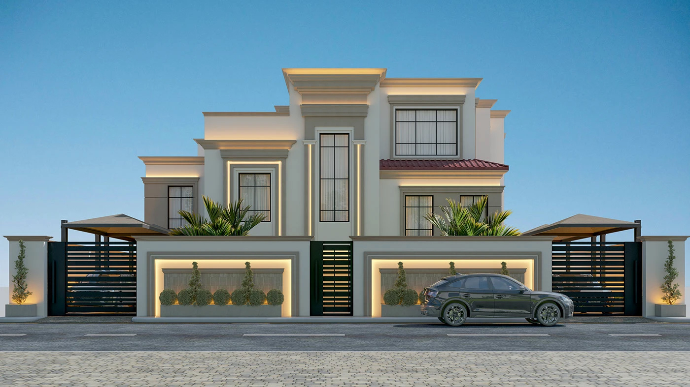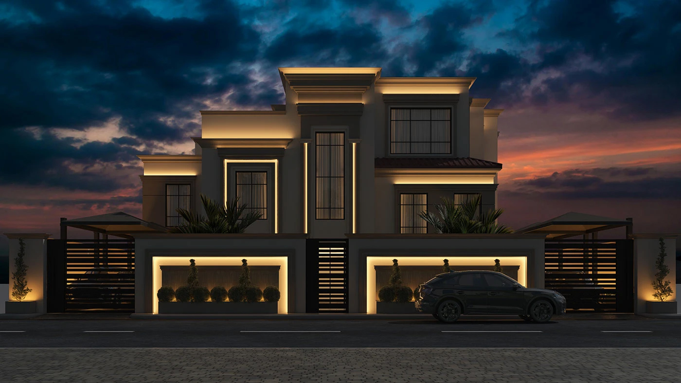 - 光影魔法: 暗藏式灯带 + 重点照明,白天靠自然光显质感,夜晚靠灯光造氛围🌙 屋檐、立柱、花池的灯光设计,让别墅像 “会呼吸的艺术品”!