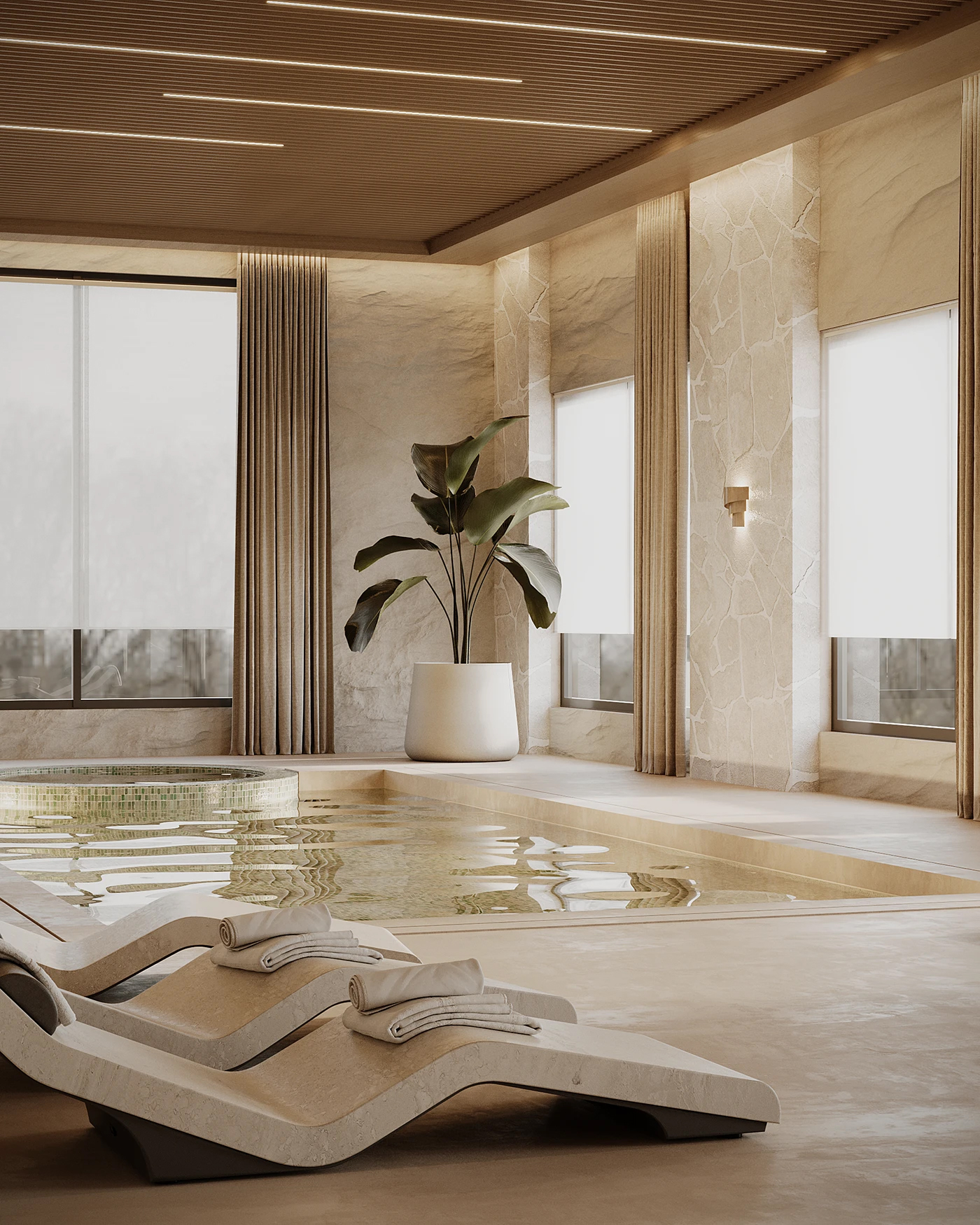 - 功能与美感共生: 泳池区的躺椅布局、健身房的弧形灯带… 把 “使用感” 做到极致🏋️ 游完泳能直接瘫在躺椅放空,健身时被氛围灯治愈,主打 “每一寸都为体验服务”!