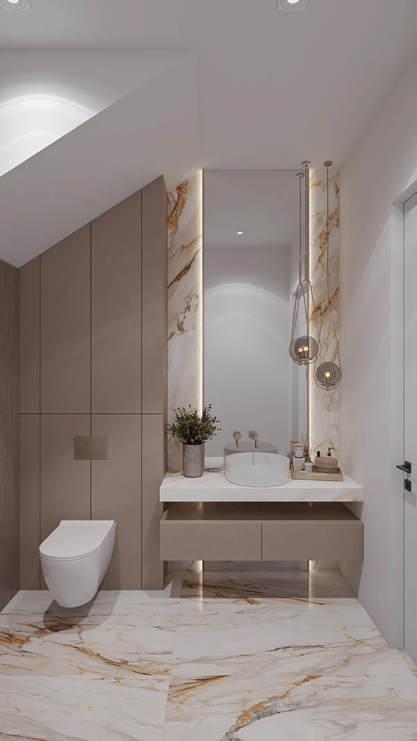 - 材质炼金术: 大理石 + 绒布 + 金属条,把 “温润” 和 “冷硬” 融合,光脚踩在地面都像在 “触摸质感”!