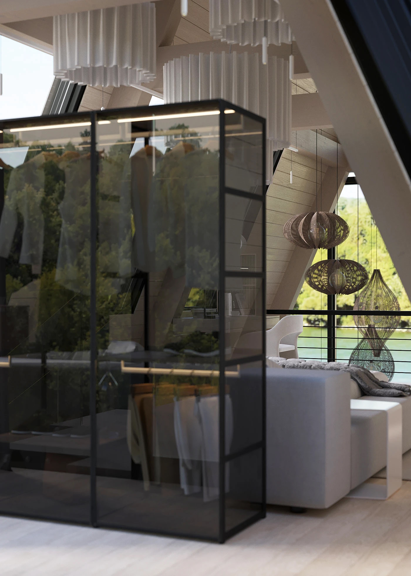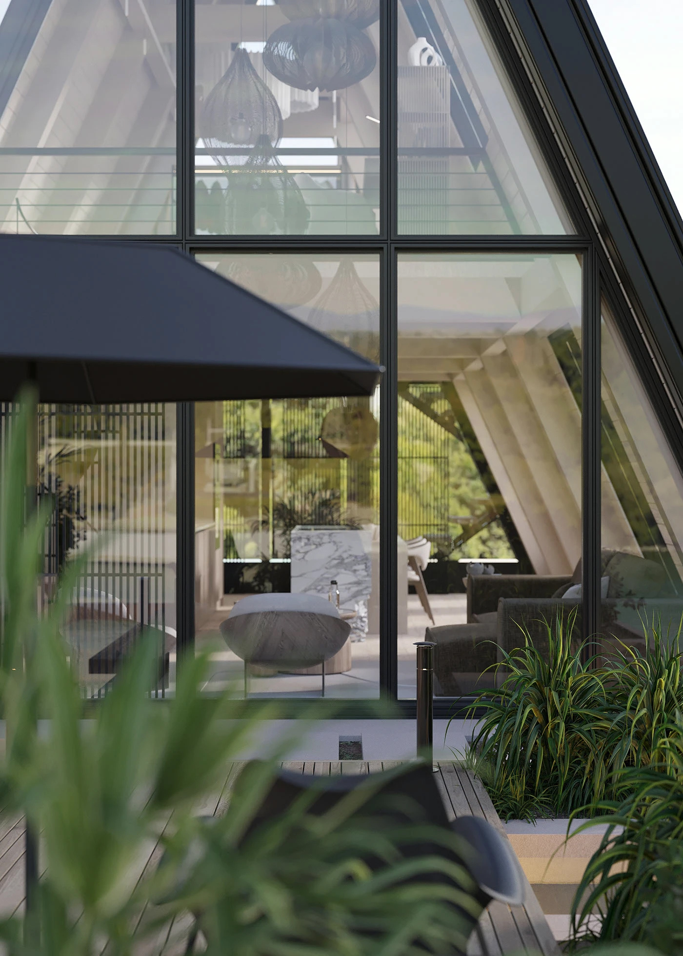 • 外观:黑色三角框架像雕塑,玻璃和金属一搭,冷冽又高级;