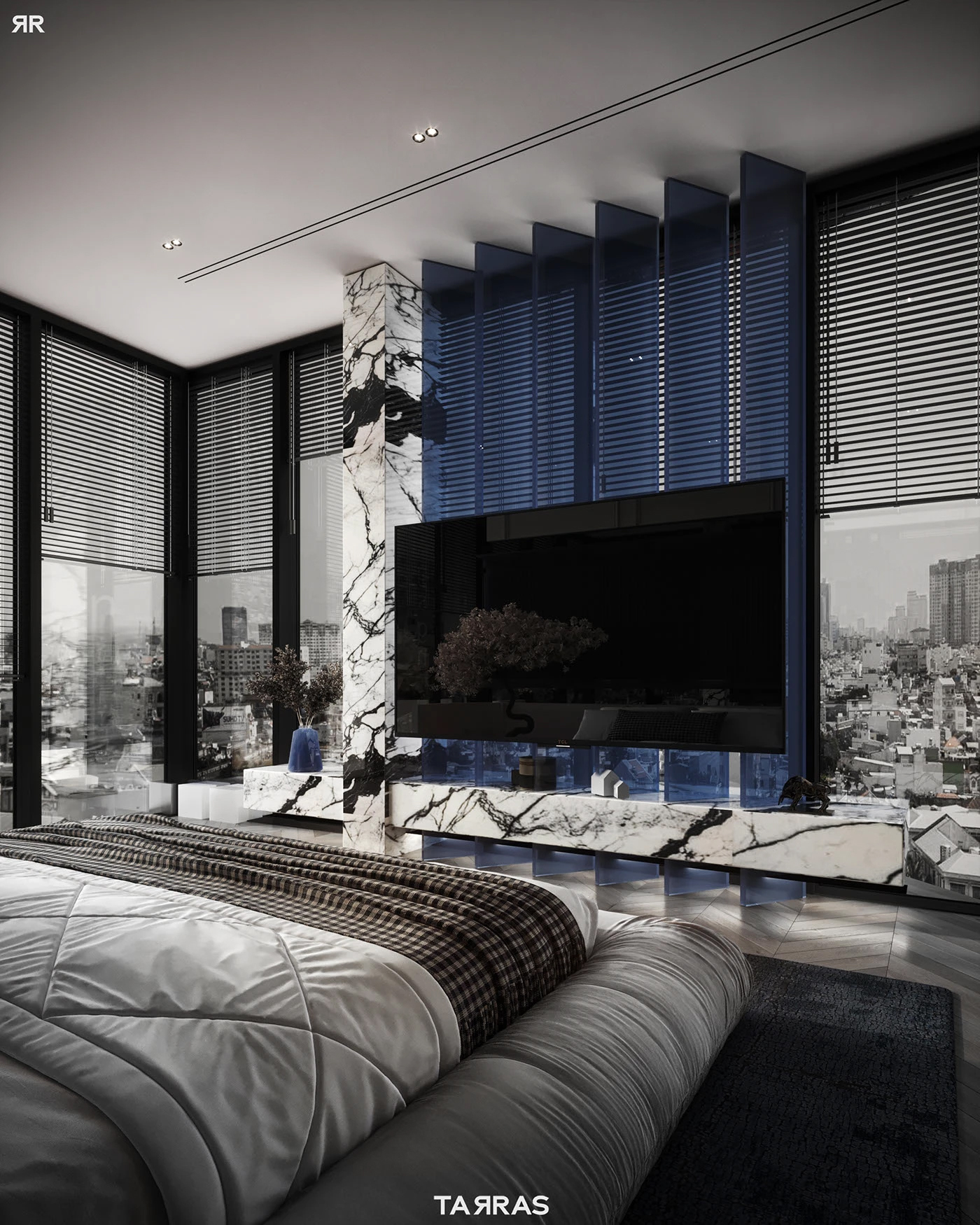 • 色彩材质杀:深色背景墙的冷静、大理石的奢华肌理,搭配软乎乎的布艺床品,“冷与暖”“硬与柔” 的对比,让空间高级却不冰冷,随手拍张床品细节,都像 “家居杂志内页”;