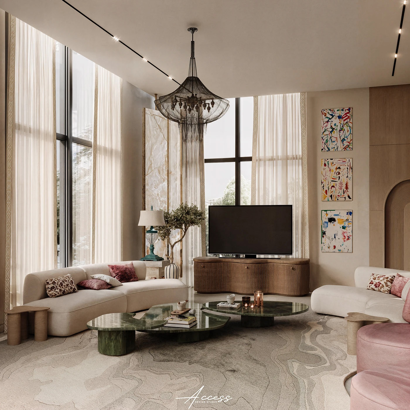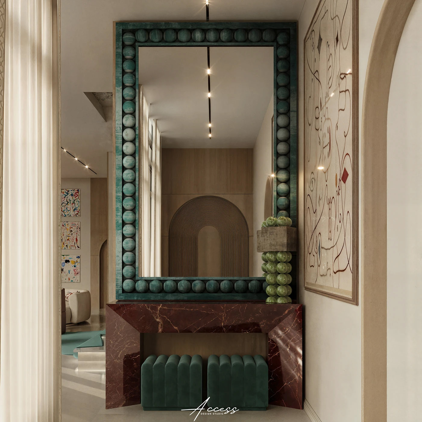 • 风格融合魔法:复古拱门的优雅、现代艺术挂画的先锋感、轻奢材质(大理石、金属、绒布)的精致,三者碰撞出 “既有岁月沉淀,又具当代审美” 的独特氛围,彻底打破 “轻奢 = 单调奢华” 的刻板印象;