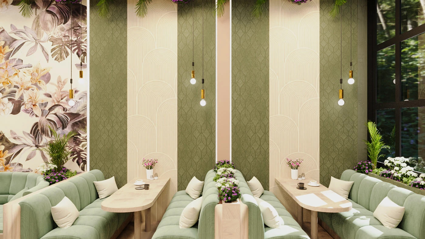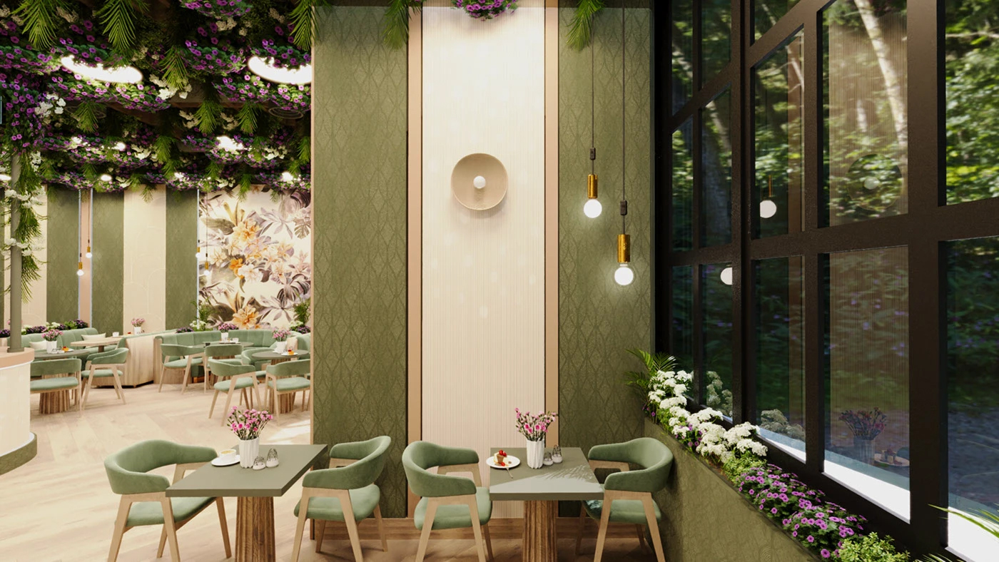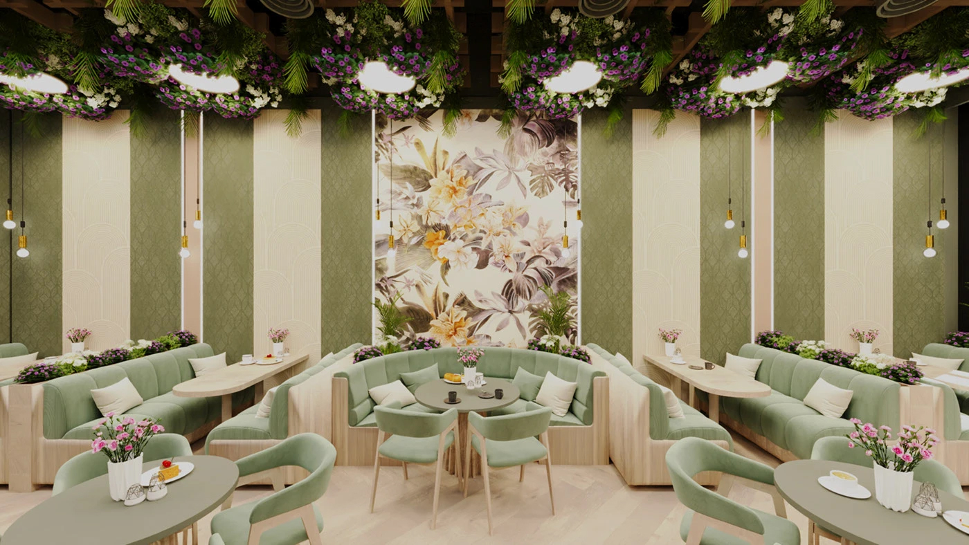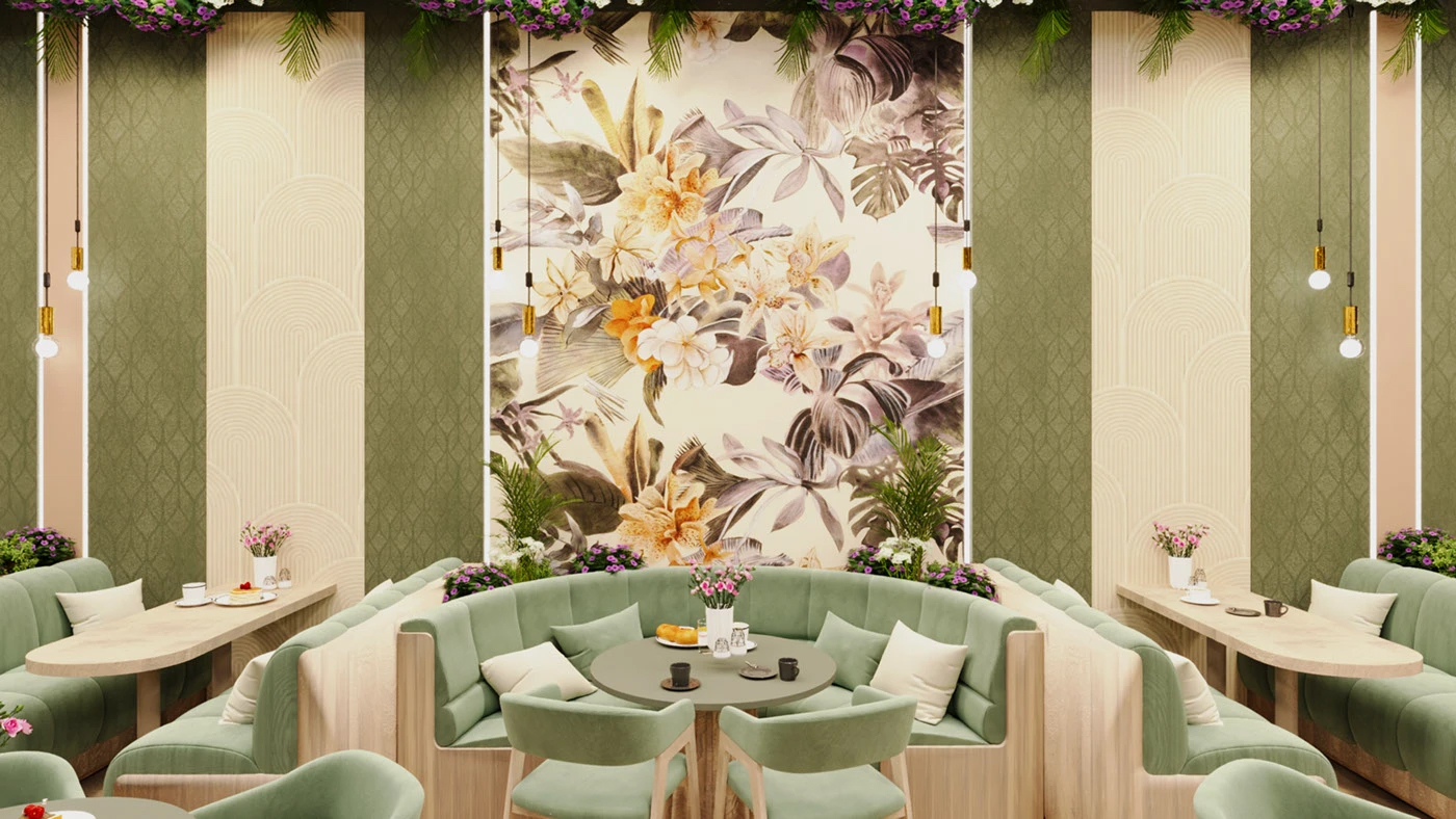 谁能拒绝被绿植和鲜花包裹的咖啡厅啊!一推开门,森系轻奢风的治愈感直接扑面而来 —— 天花板垂落的花艺、墙面的大幅花卉壁画、莫兰迪绿的绒面沙发,把 “自然生机” 和 “轻奢质感” 揉得恰到好处,坐在这里喝咖啡,感觉连呼吸都带着草木香,治愈到想待一下午✨