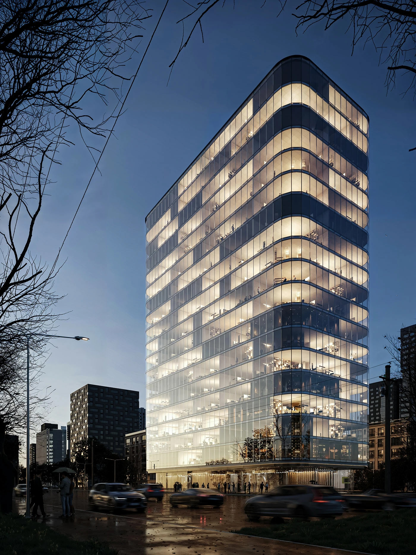 - 空间层次戏很足:流线型立面设计不仅美观,还能优化建筑风环境;玻璃幕墙的采光优势让内部空间通透明亮,为办公场景注入舒适感与开阔感。