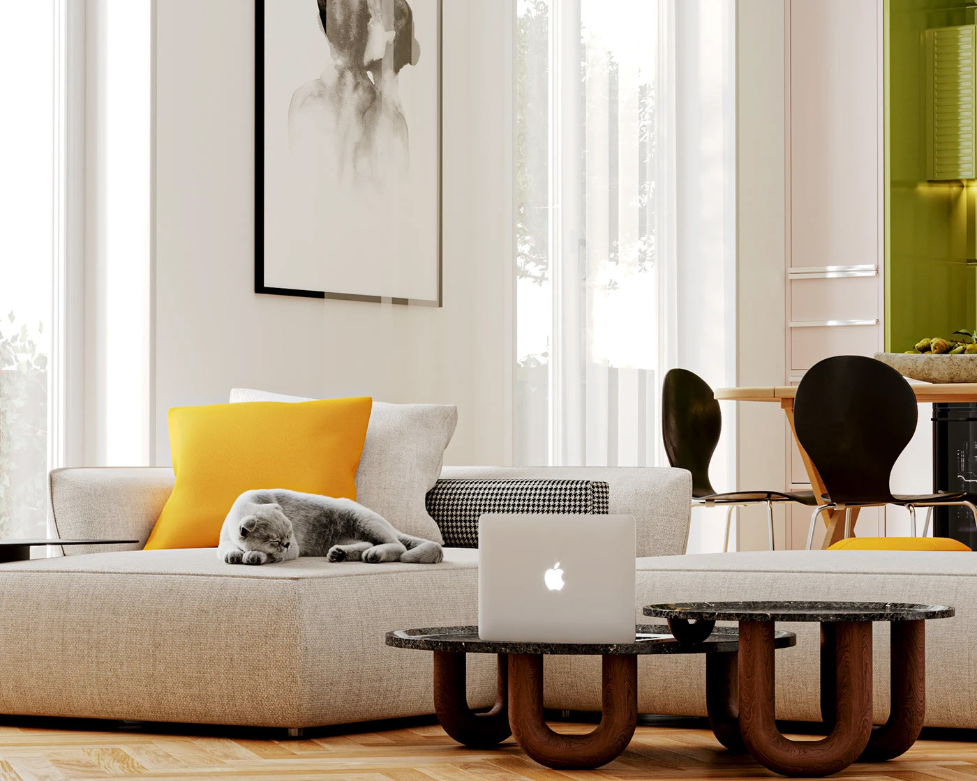 - 空间层次戏很足:开放式餐厨客布局让小户型显大又通透,色彩焦点(草绿厨房、明黄抱枕)成为视觉亮点,木质收纳和艺术摆件则丰富了细节层次,每一处都透着 “设计的巧思”。