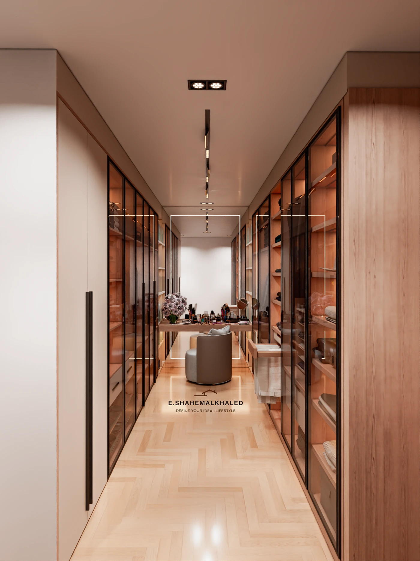 - 空间层次戏很足:卧室的沉浸式布局、衣帽间的通透展示、公共区的功能分区,每个空间都通过木质元素和灯光界定出独立感,却又因木色呼应统一成整体,高级感贯穿每一处细节。
