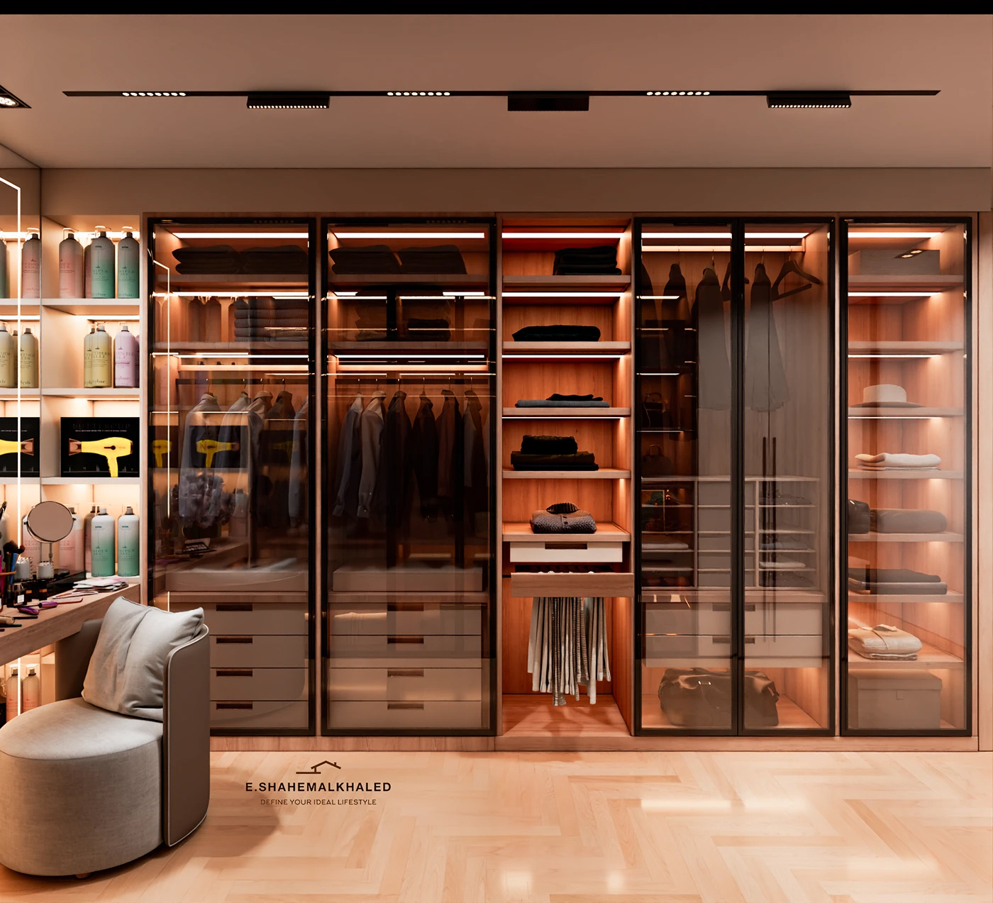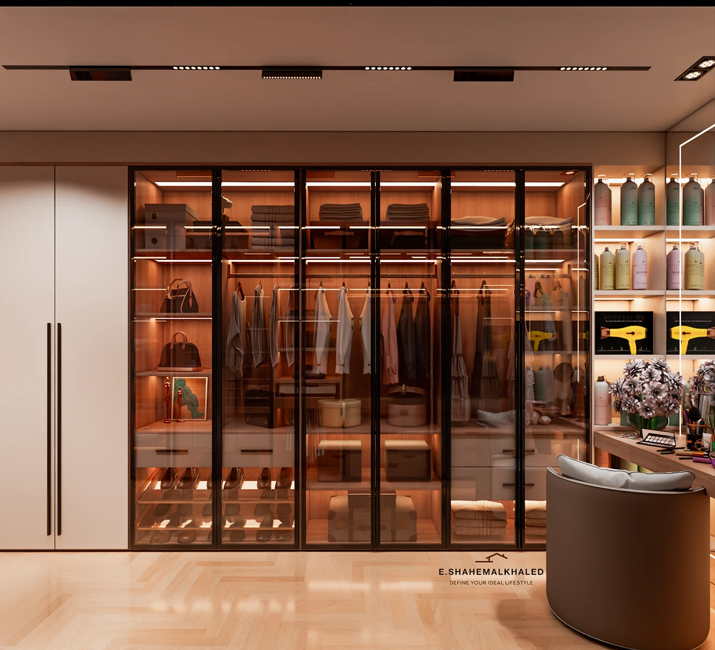 - 灯光氛围杀:嵌入式灯带的轮廓光、吊灯的焦点光、暗藏灯的氛围光层层交织,在木质墙面上跳跃出层次感,随手一拍都是温馨又高级的家居大片。尤其是衣帽间的暖光设计,把衣物衬得如时尚展展品般精致;