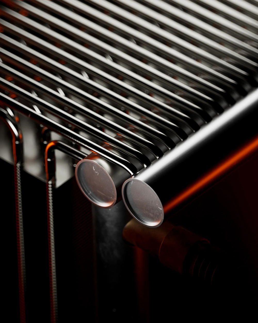 - 未来工业风质感:黑色金属外壳 + 橙色调点缀,把科技产品的精密感拉满,工业材质的硬朗(金属、蜂窝状散热结构)撞上 3D 建模的动态张力(元件螺旋、放射式布局),科技硬核与艺术审美完美融合;