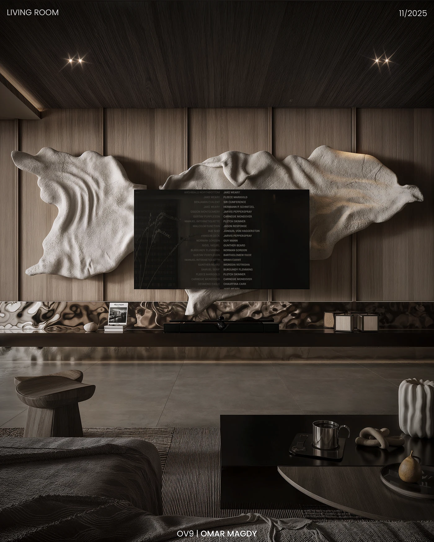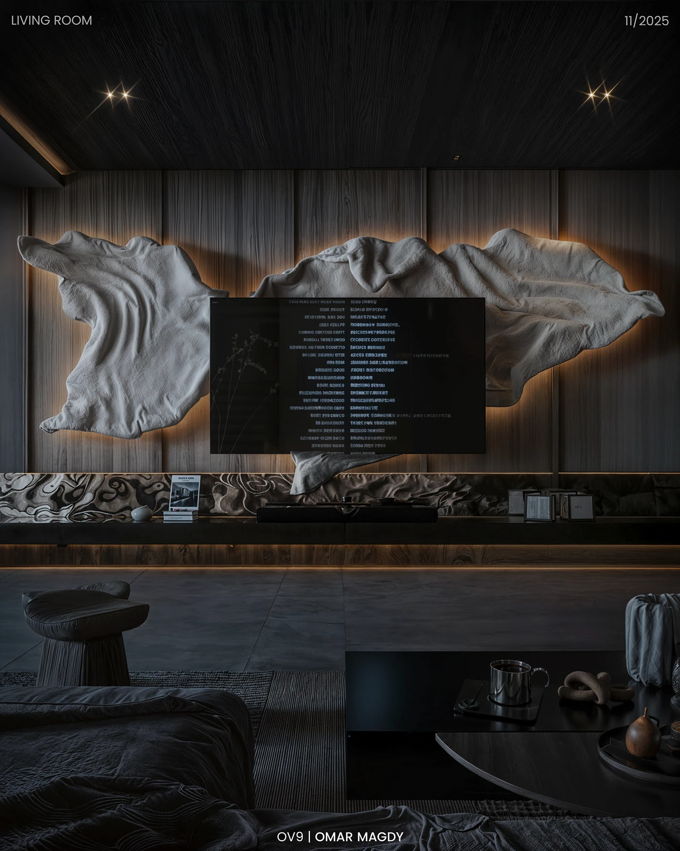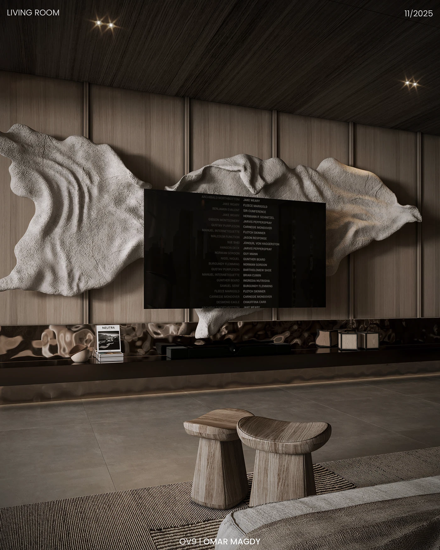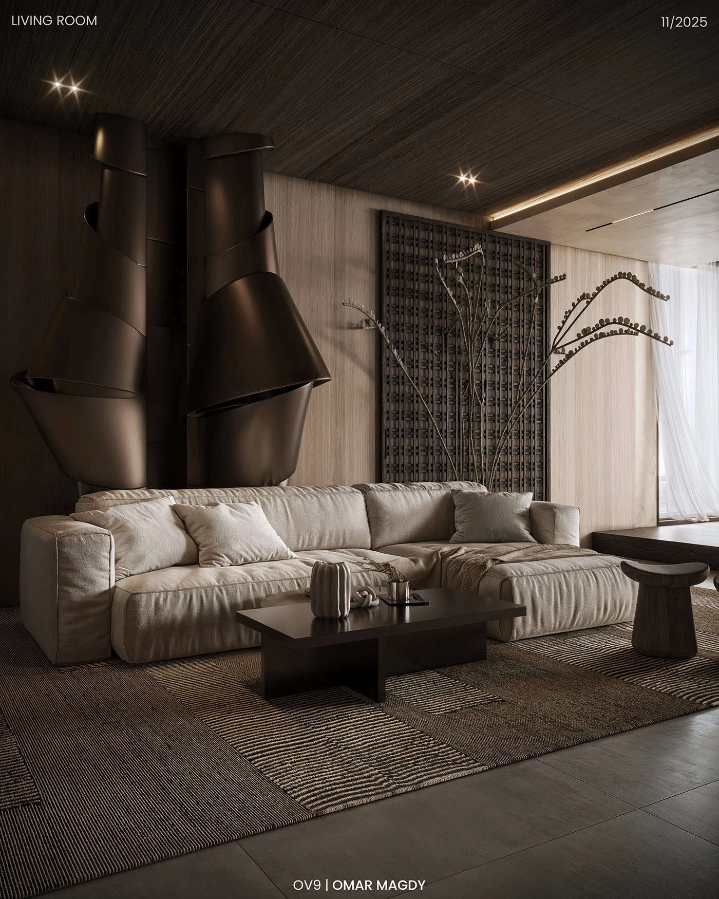 • 空间层次暴击:挑高布局 + 开放式动线,靠艺术装置和材质划分功能区,让 “通透感” 和 “层次感” 并存,居住体验拉满。