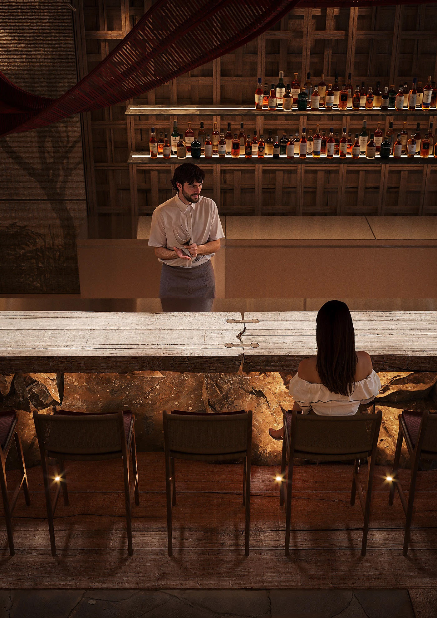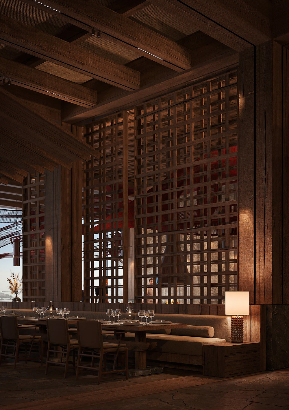 • 氛围层次感:糙石冷、暖木温、柔织软,加上点光 + 格栅漏光,坐多久都不腻;