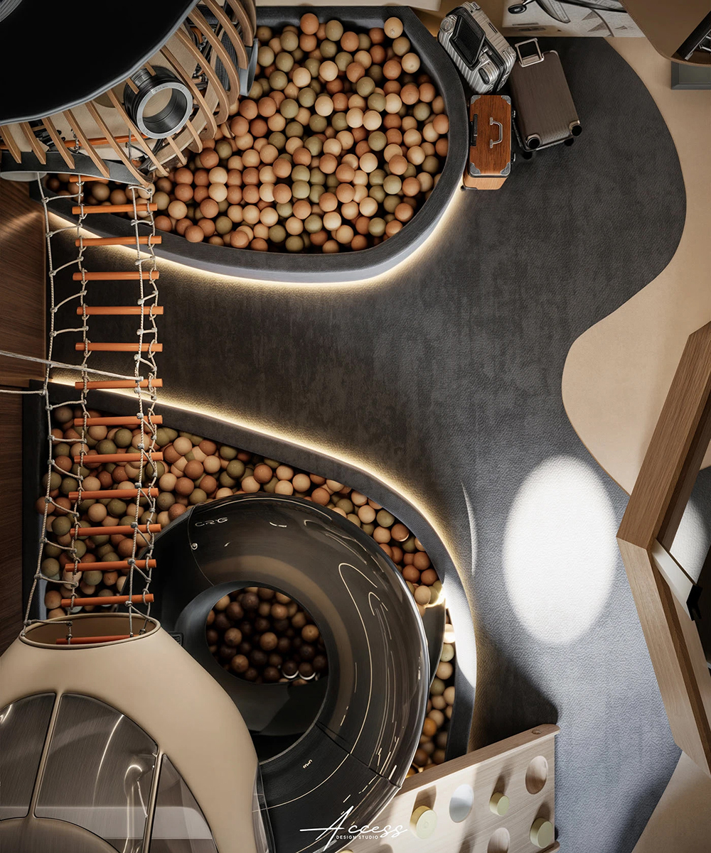 - 功能不打架:玩(球池、滑梯)、储(玩具收纳)、坐(软包凳)全整合,空间没半分浪费;