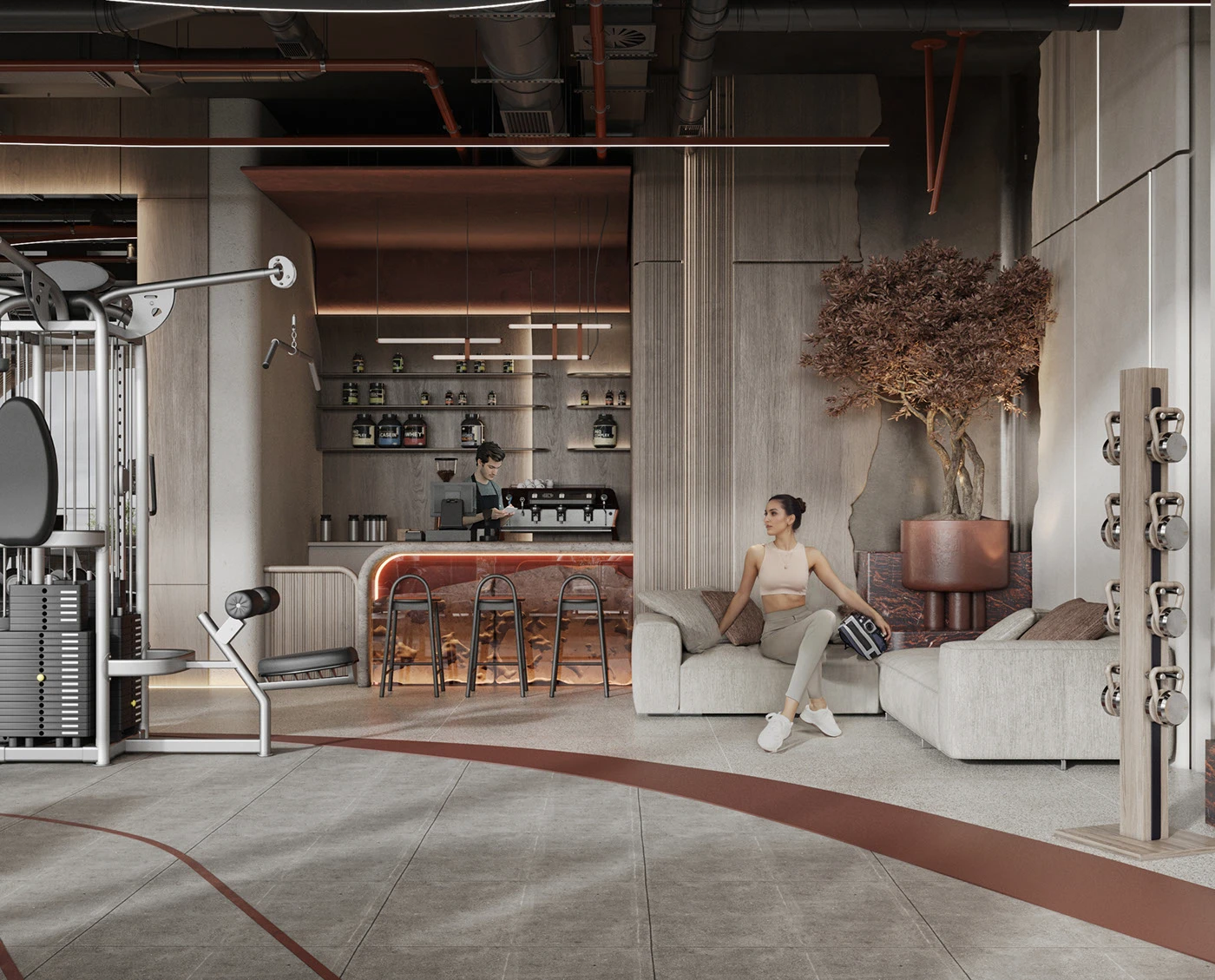 - 氛围刚刚好:裸露管道没让空间变冰冷 —— 暖光缠在墙缝里,软沙发配绿植,运动的燥和放松的柔平衡得刚好;