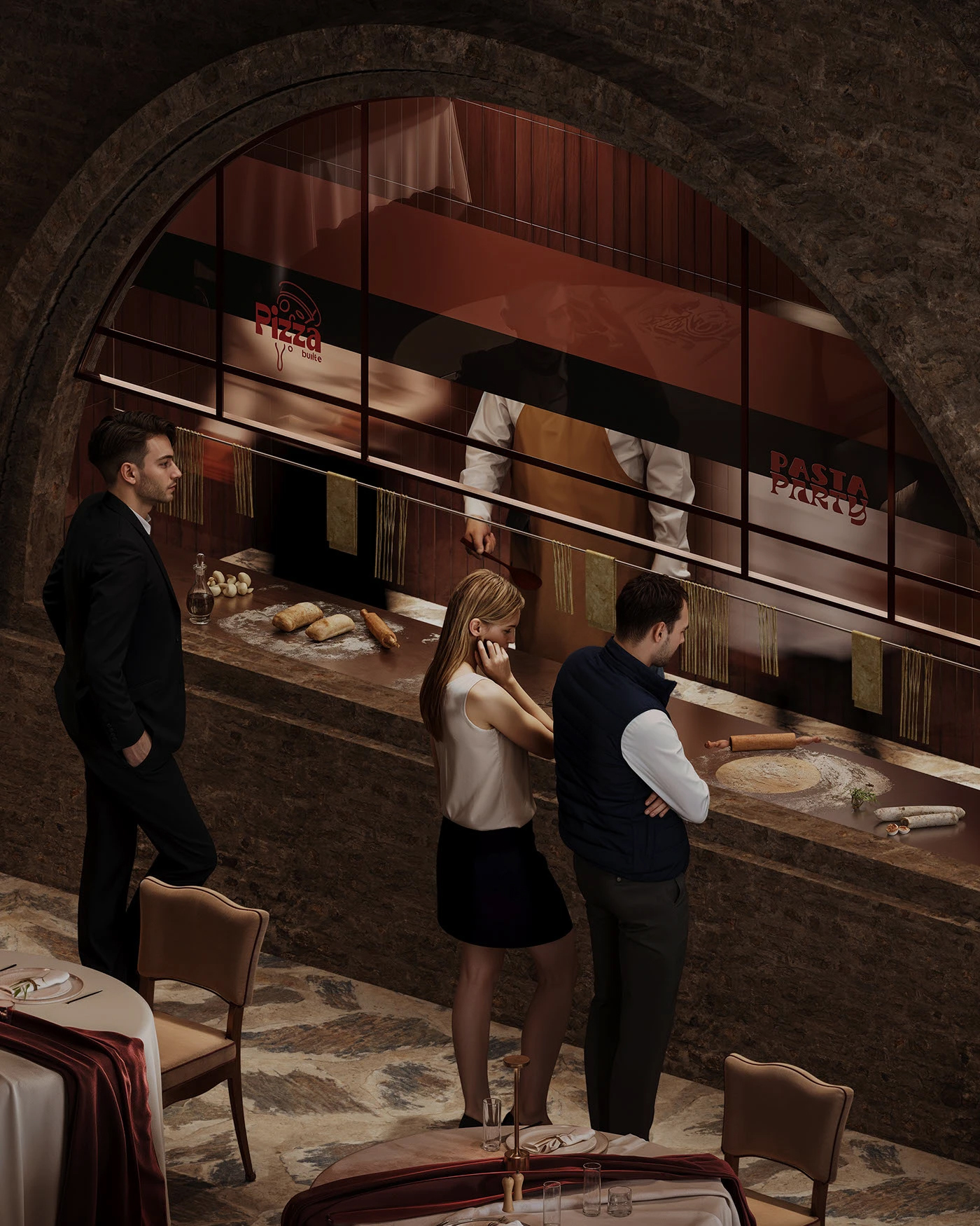 - 氛围太会了:粗粝砖墙衬软包座椅,暖光缠在壁画边缘,吃披萨都像赴艺术晚宴;