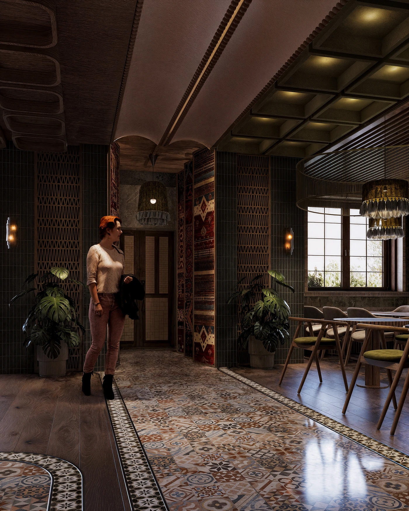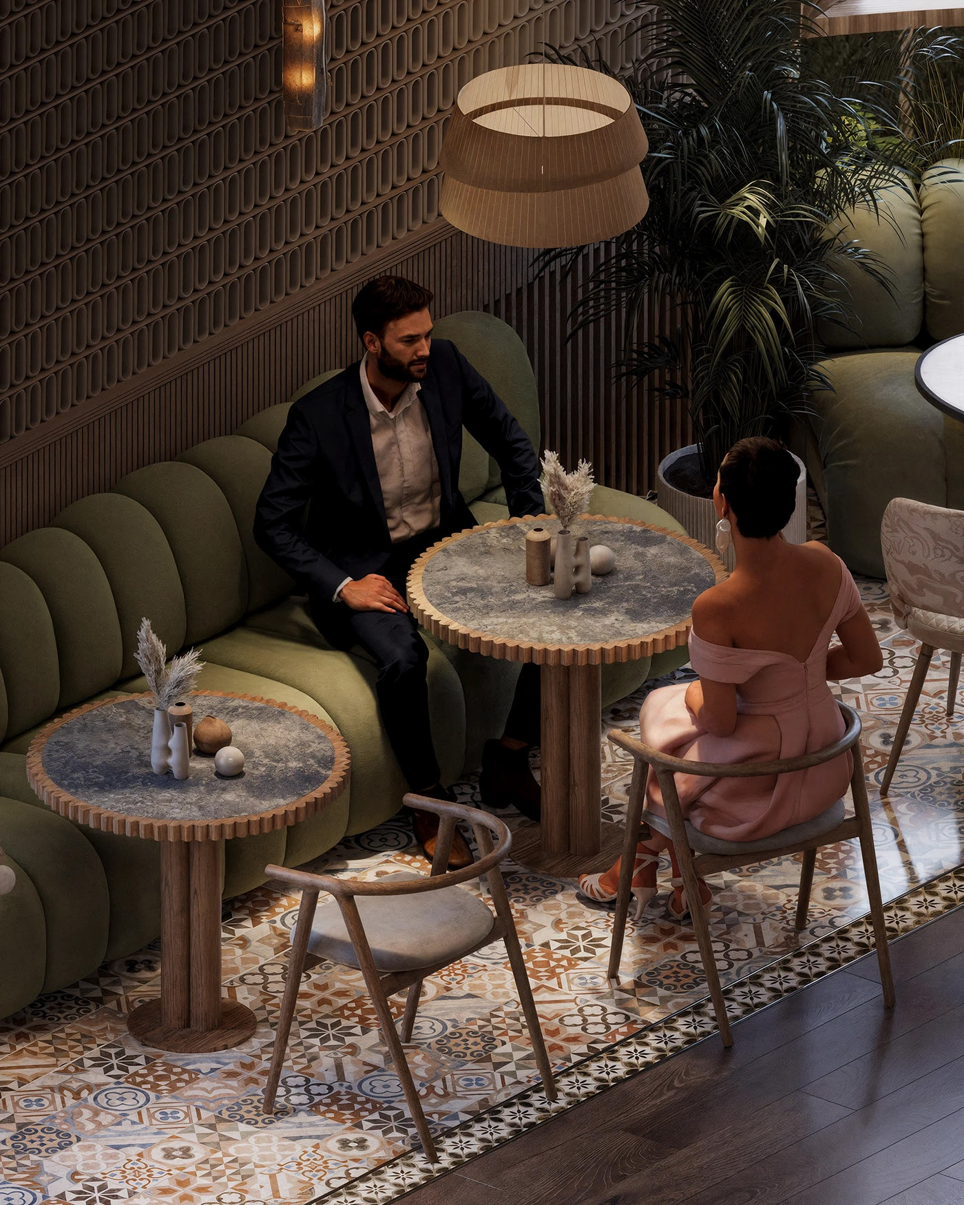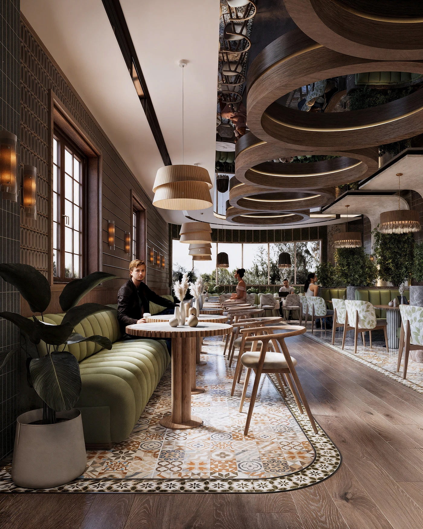 这设计能火真的是凭实力:✔️风格混搭不违和:复古 + 轻奢,艺术感 & 舒适感双拿捏✔️商业属性拉满:好拍易打卡,客人久坐也不觉得闷✔️细节全是巧思:瓷砖纹样、灯具造型、色系搭配都戳审美