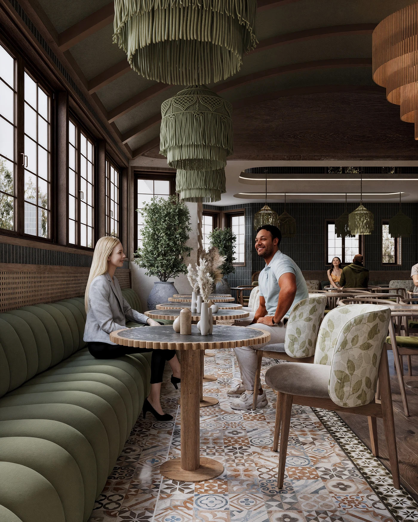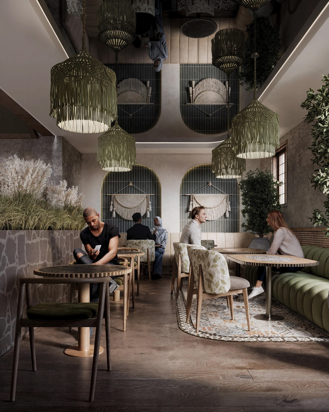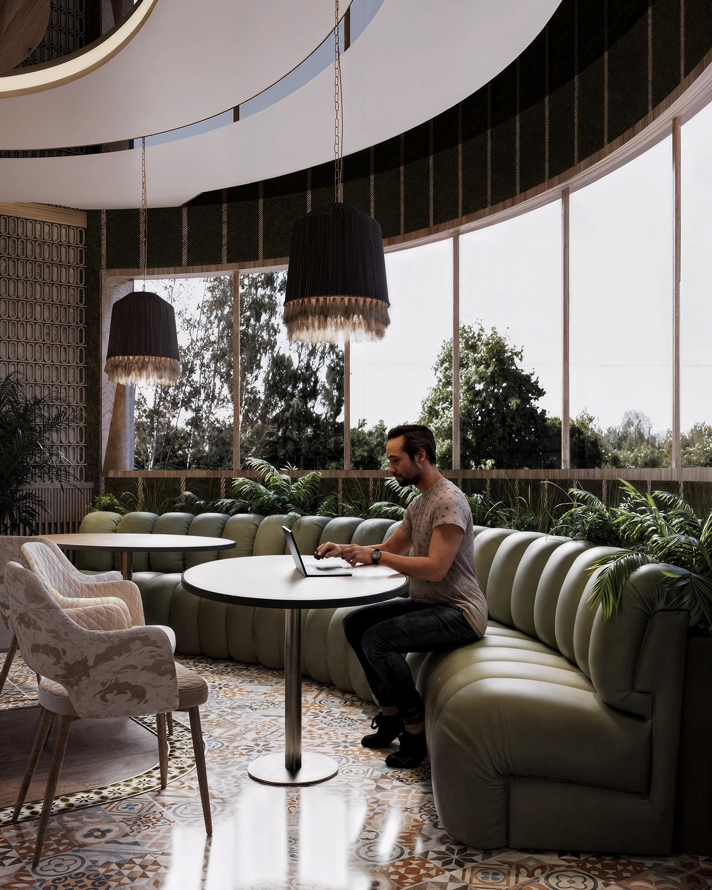 这设计能火真的是凭实力:✔️风格混搭不违和:复古 + 轻奢,艺术感 & 舒适感双拿捏✔️商业属性拉满:好拍易打卡,客人久坐也不觉得闷✔️细节全是巧思:瓷砖纹样、灯具造型、色系搭配都戳审美