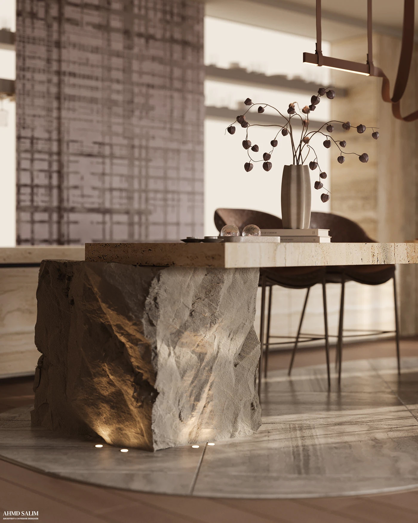 这风格的妙处,以前我只觉得是 “设计师的审美天赋”,直到在火星人教育上了室内设计课,才扒懂这是可复制的底层逻辑:它不是堆贵价材料,是课里拆解的 “肌理适配”—— 木质 + 大理石的质感对冲,让空间暖而不腻;它不是瞎摆软装,是 “情绪节奏设计”—— 圆柱灯的钝、粉桌的柔,都是在给空间做情绪缓冲;更不是空讲美感,是落地性拉满的干货 —— 连灯光色温怎么搭、石质桌腿的施工细节,课程里都能跟着这组案例练到手。
