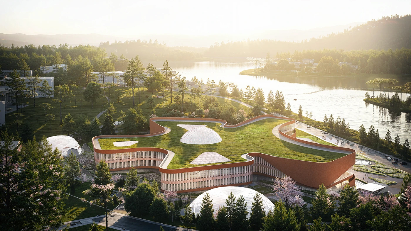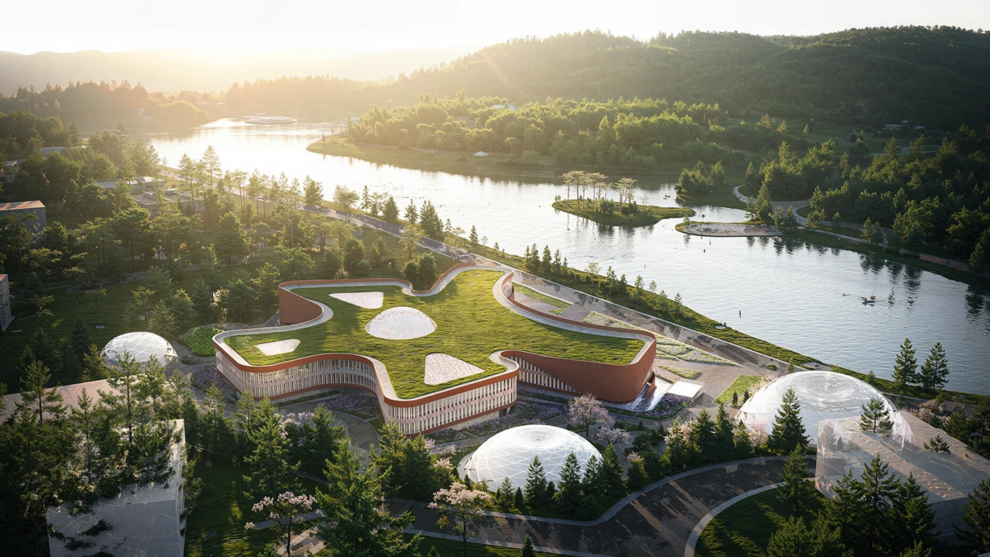 谁刷到这组室内外建筑培训案例能不盯着看啊!🌿曲面外墙裹着暖调肌理,绿色屋顶直接 “长” 进湖边树林里,连透明穹顶都把花园包在建筑里 —— 这哪是盖房子,明明是把建筑 “种” 进自然里!