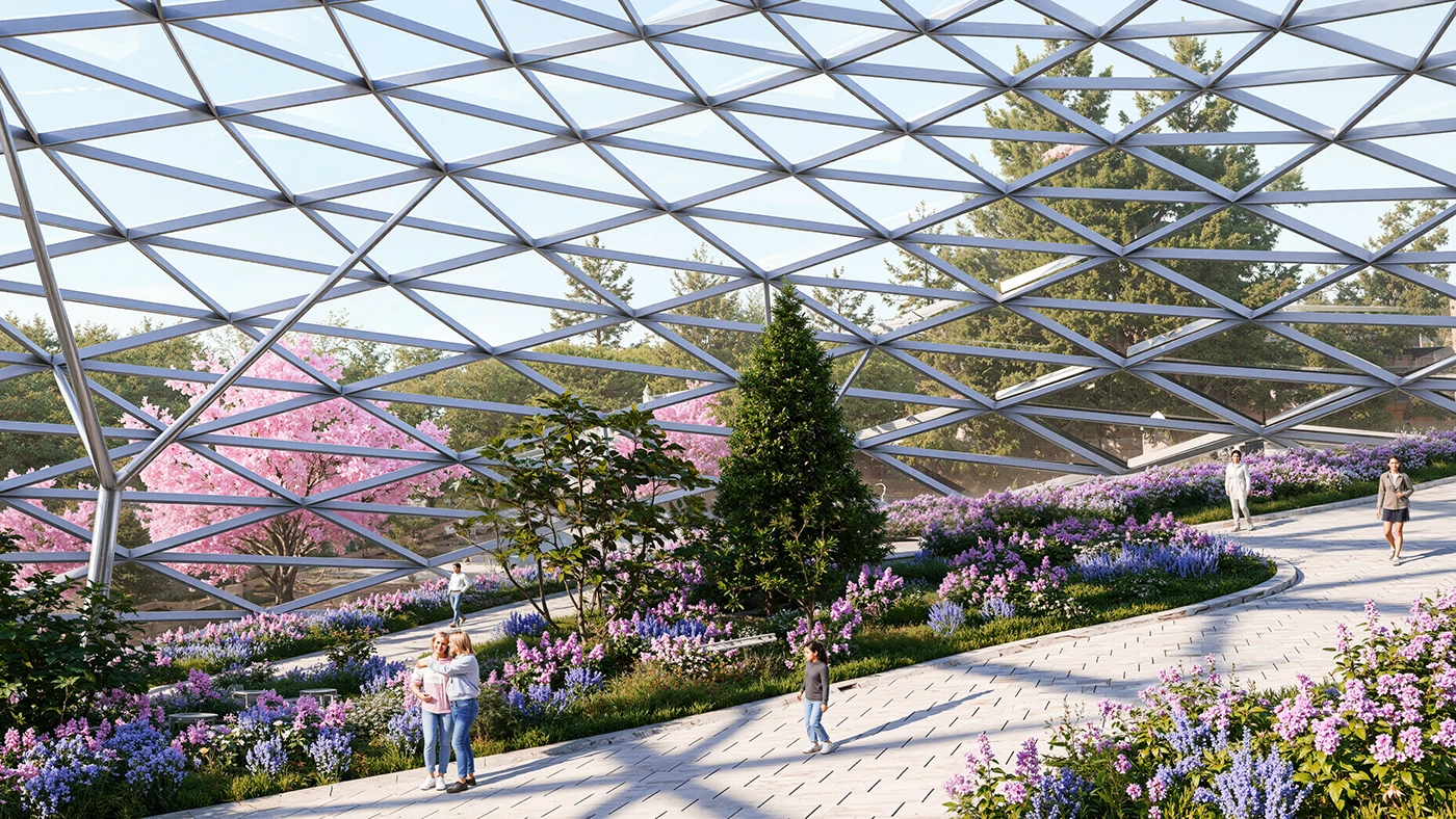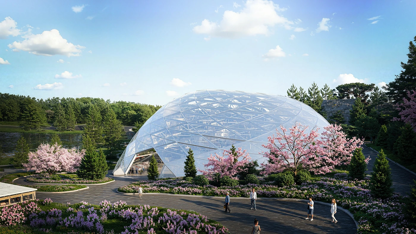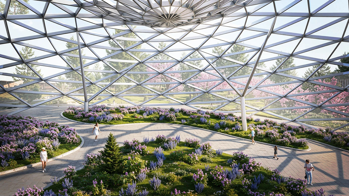 ✅ 穹顶是神来之笔:透明网架把户外花园裹进建筑,下雨也能踩石板路逛花丛,把 “沉浸式自然体验” 焊死在空间里
