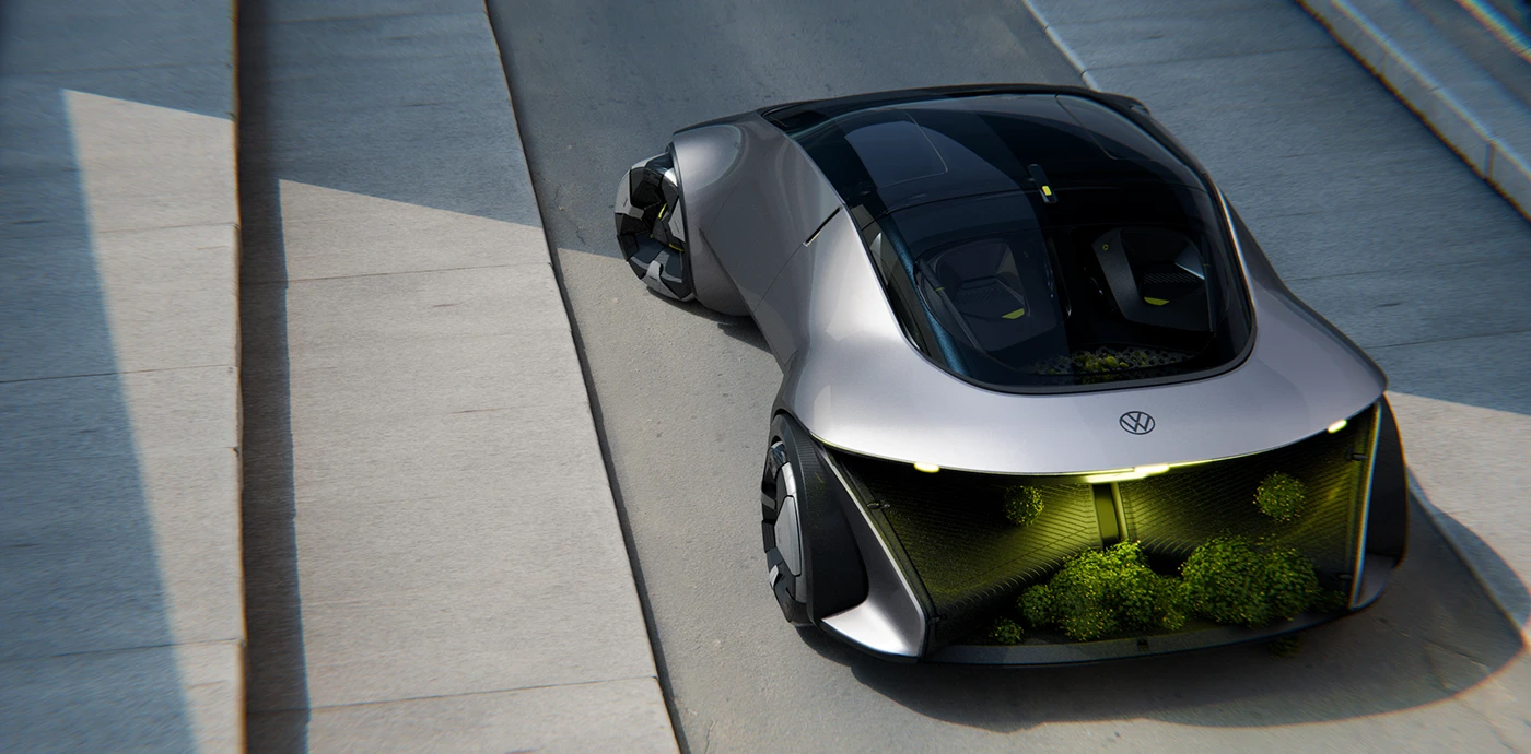 谁能想到汽车能当 “移动小森林” 啊?这台未来概念车一出场直接把我焊住 —— 流畅的银灰曲面裹着几何切割的硬线条,车头、车顶居然嵌着鲜活绿植,开在路上是拽炸的科技座驾,停着的时候直接变能净化空气 + 发电的生态单元,这反差感也太会了✨