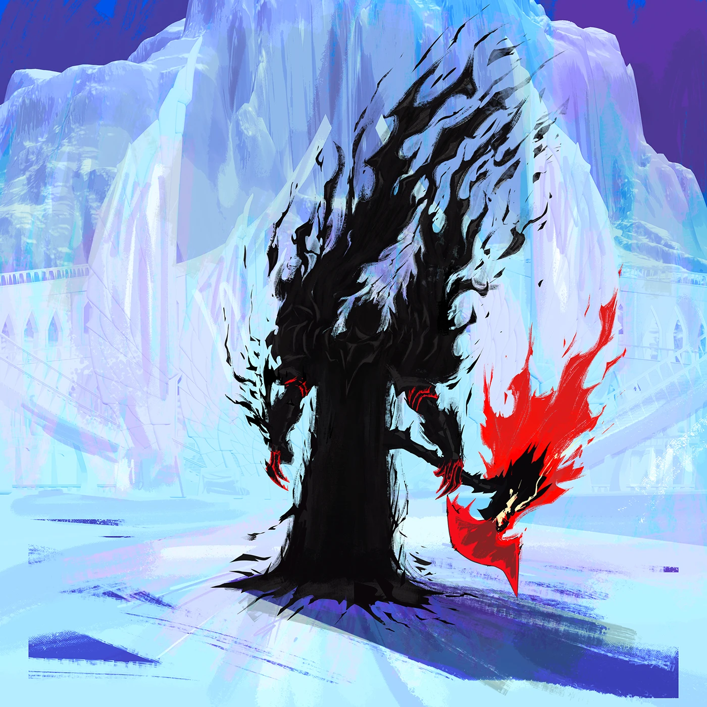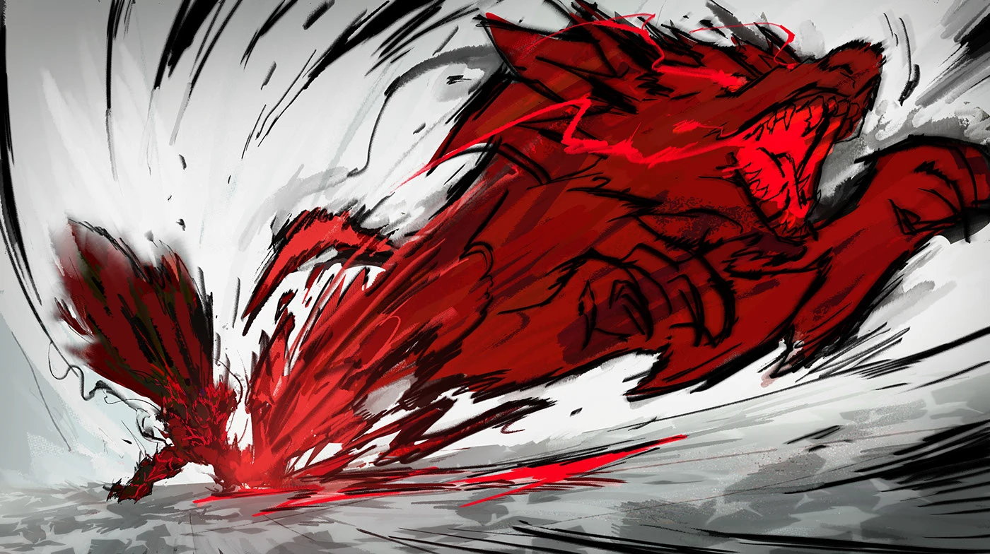 • 暗黑热血插画风:红黑高饱和撞色 + 粗犷笔触,怪物 / 角色充满力量感,分镜节奏紧凑,像把 “燃” 字焊在画面里,适合做动画叙事或游戏 PV。