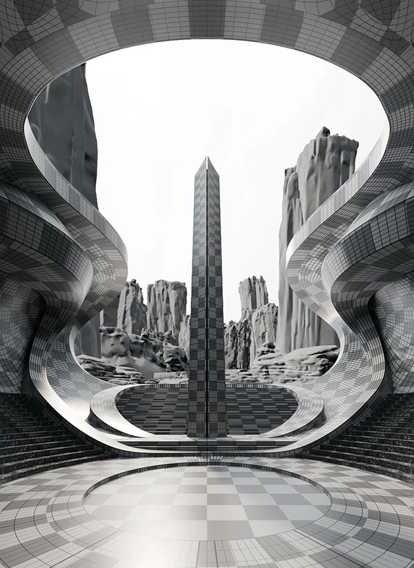 - Corona Renderer 渲染:用 Corona Renderer 渲染水泥的粗糙肌理、金属方尖碑的反光质感,模拟自然光影的层次;