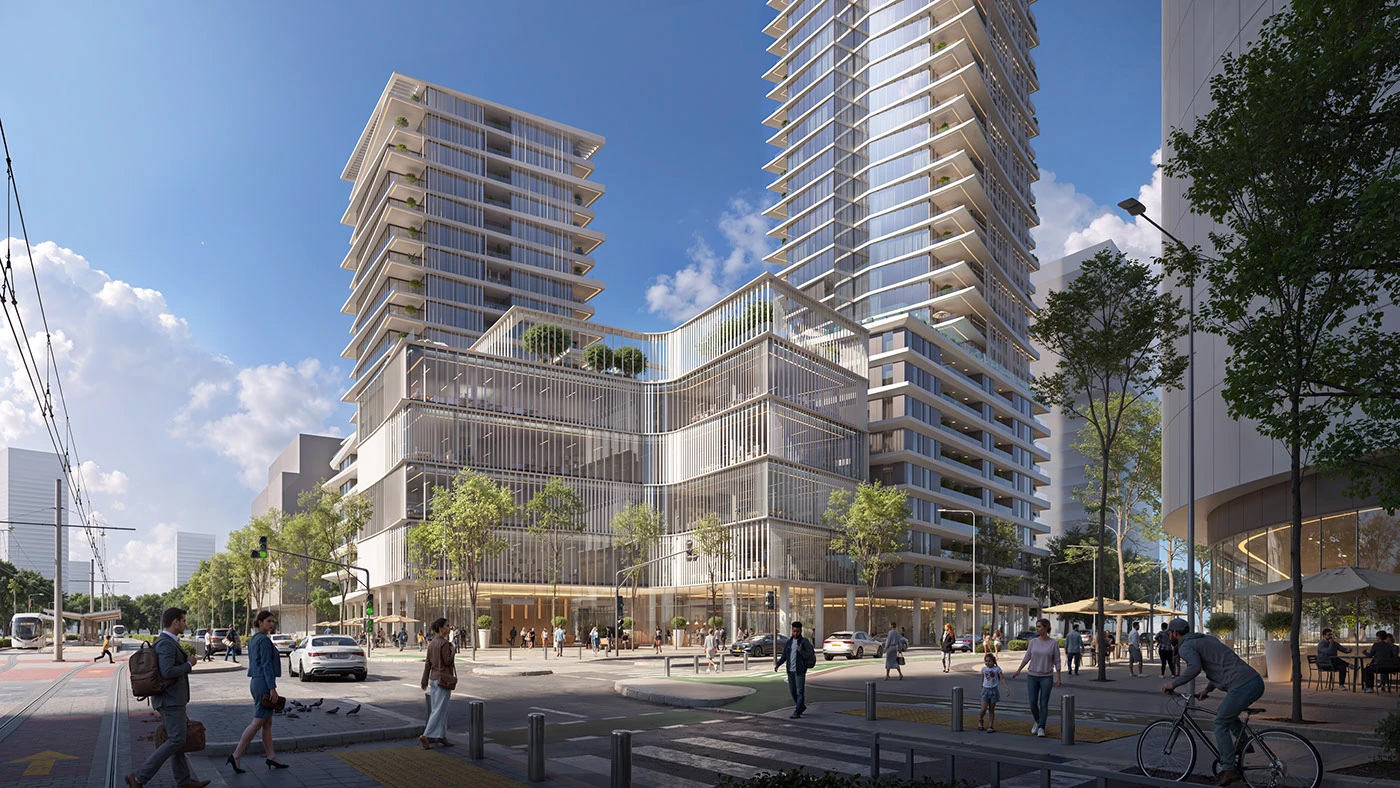 - 3ds Max 精准建模:用 3ds Max 搭建叠层退台的结构模型,精准还原每一层的悬挑角度、玻璃幕墙的分割比例,确保建筑形态的流畅感;