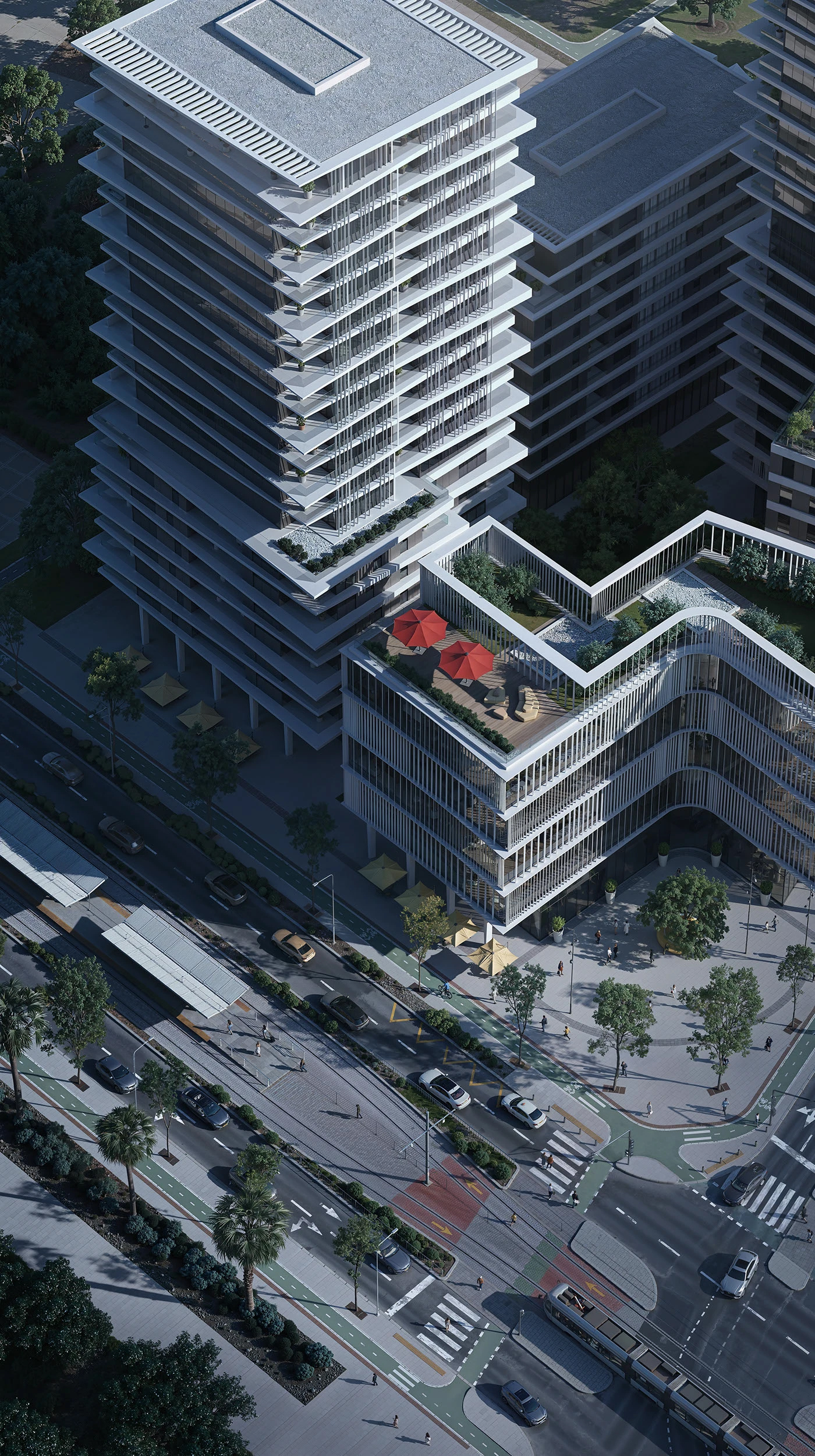 盯着这叠层退台的肌理才懂:学好 3ds Max+Corona+PS,连高层住宅设计都能酷到像未来大片~