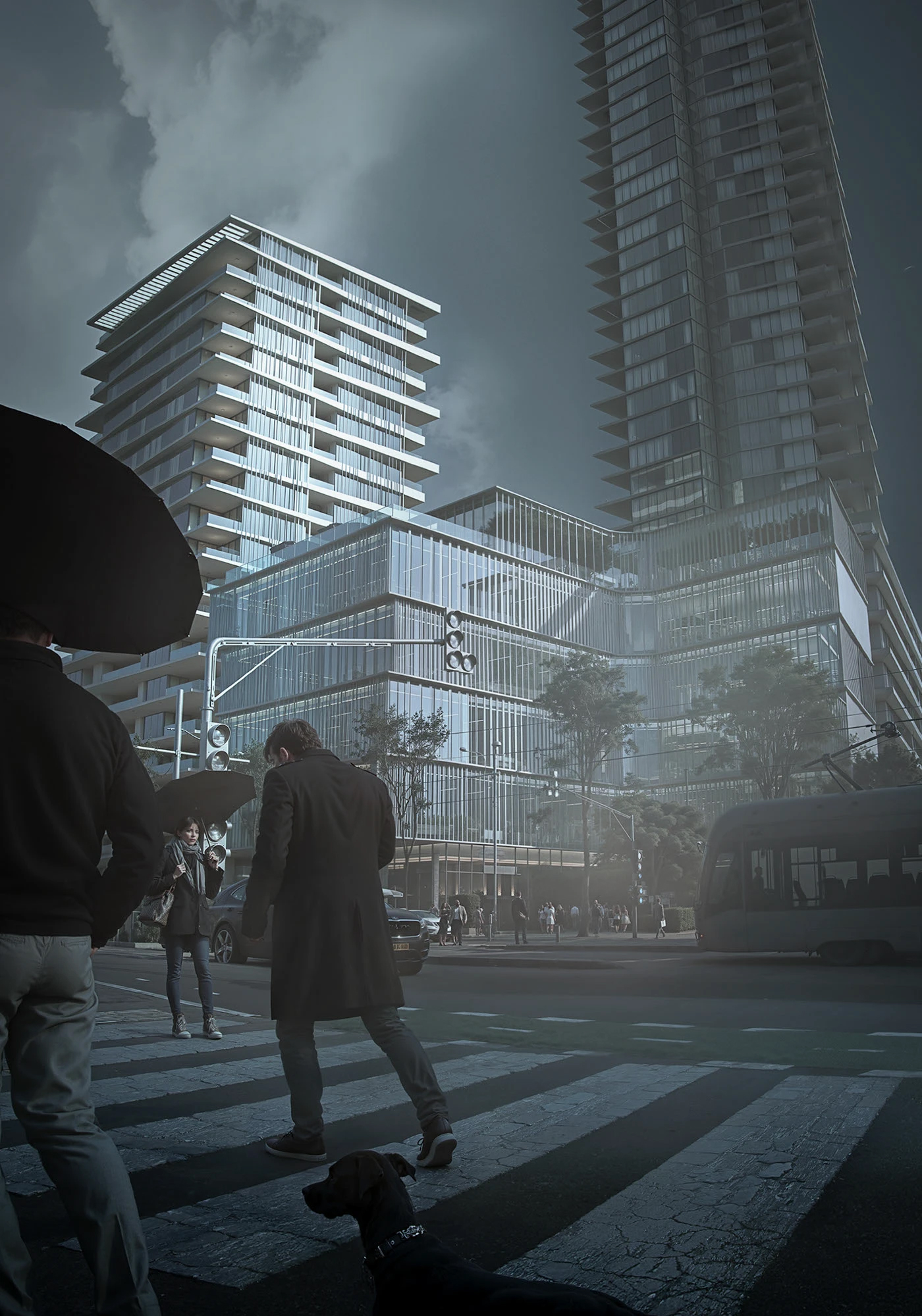 - Corona Renderer 质感渲染:靠 Corona 渲染白色金属的细腻反光与玻璃的通透质感,模拟晴天、雨天等不同时段的自然光影,让材质的冷暖碰撞更真实;