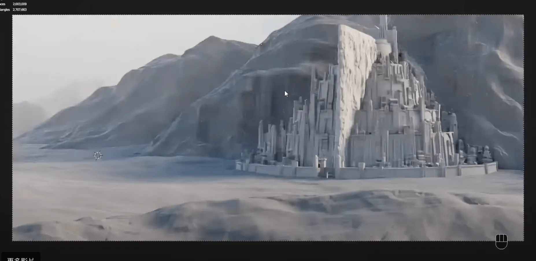 - 灯光设计:米那斯提力斯的史诗感源于 “自然光与建筑光影的呼应”,可采用 “主光 + 补光 + 环境光” 的三点布光法 —— 主光模拟日落时分的暖黄色光线(营造悲壮、宏伟的氛围),补光弱化阴影的浓重程度(避免画面过暗导致细节丢失),环境光增加整体亮度(保证山体与天空的过渡自然)。