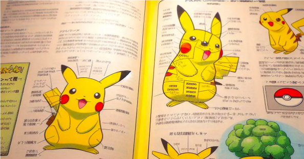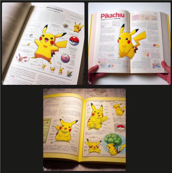 - 输入提示词:可直接用中文精准描述,例如 “百科全书中的某一页,包含大量介绍文字,详细说明皮卡丘的身体各部位结构与能力”;
