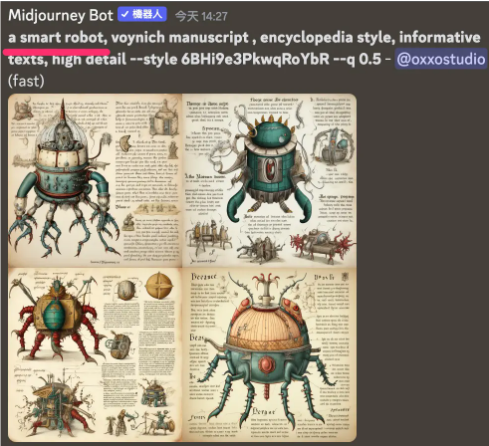 - 输入组合提示词:按照 “主体 + 风格 + 细节” 的公式撰写,例如 “智能机器人,伏尼契手稿,百科全书风格,资讯说明文字,高细节”(英文:a smart robot, voynich manuscript, encyclopedia style, informative texts, high detail);
