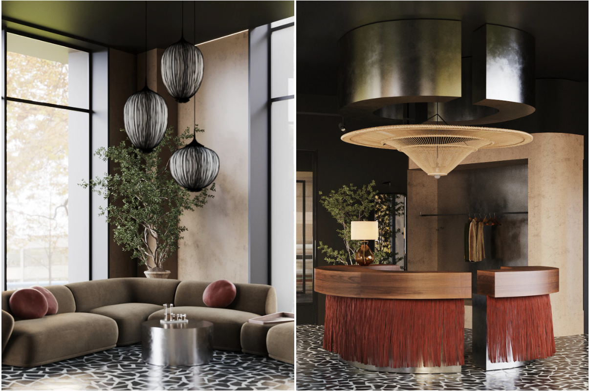 - 质感渲染:用 Corona Renderer 渲染,模拟自然光与室内灯光的层次,还原微水泥的肌理、丝绒的哑光质感,让空间氛围感直接拉满。
