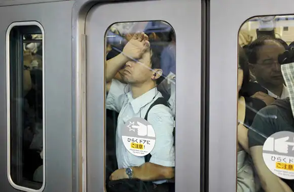 德国摄影师Michael Wolf拍摄的“东京地铁梦(Tokyo Subway Dreams)记录了每天上班高峰期东京地铁里的模样。